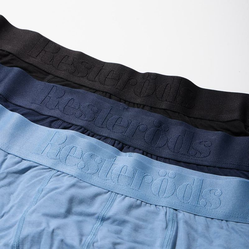 スウェーデン発「RESTERODS(レステロッズ)」の ボクサーパンツ。こちらはバンブーコットンを使用したボクサーパンツが3枚セットになった3PACKタイプ。バンブーコットンはとても滑らかで清涼感のある肌触りで、定番の生地よりも更に快適な穿き心地を実現しています。デザインは定番のGUNNARと同様で、ウェストにはブランドネーム入りの太目のリブを使用しています。