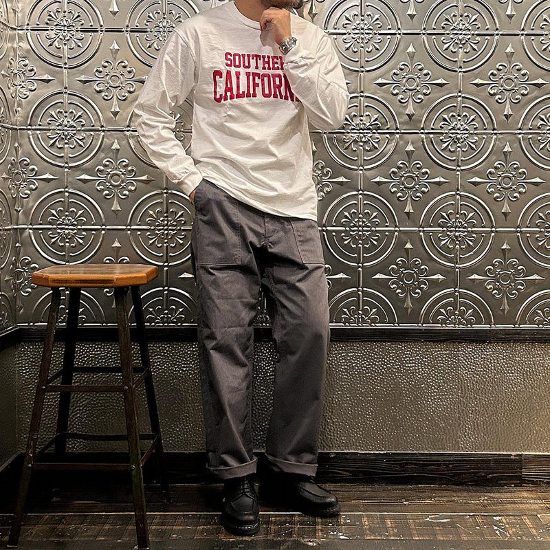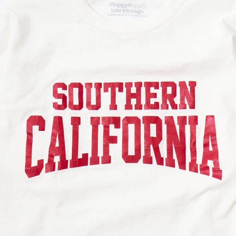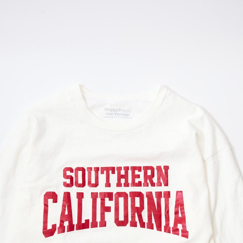 SLOPPY SUPPLY(スラッピーサプライ)のL/S CREW NECK NECK NEO VINTAGE SO CAL 25 T SHIRT。アメリカ製のオリジナルボディを使用した長袖のプリントTシャツ。ミドルウェイトで柔らかく着用感の良いボディ。ヴィンテージ感のあるオリジナルプリントも良い雰囲気。プリント後に洗い加工を施して古着の様な風合いを表現しています。