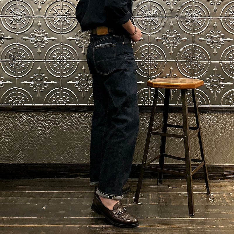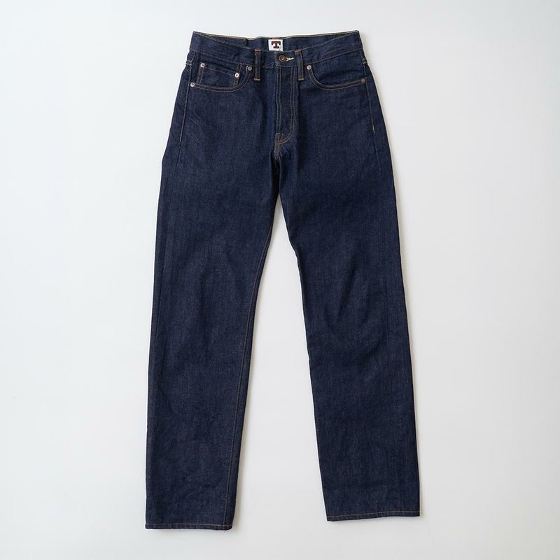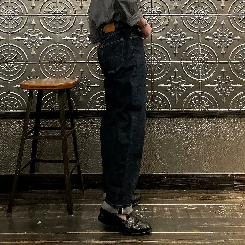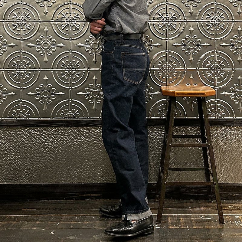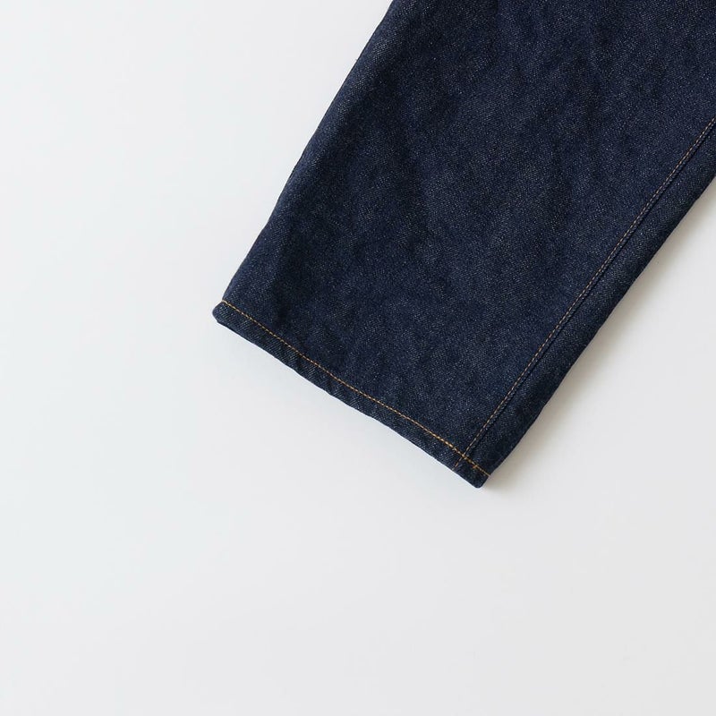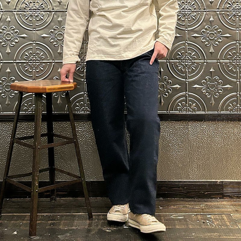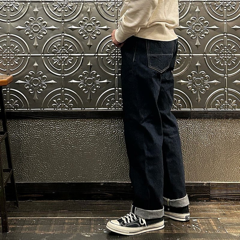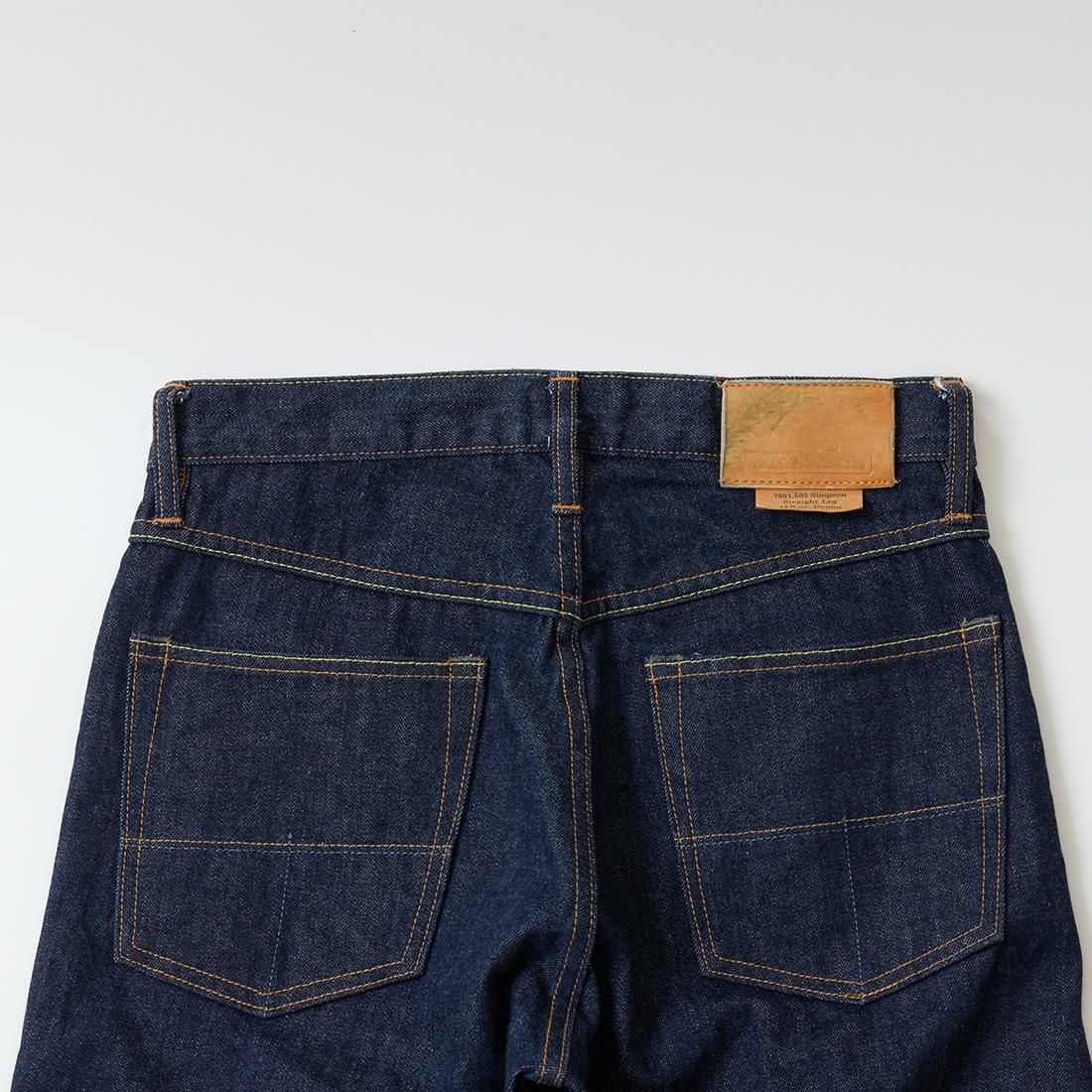 2008年創業アメリカのサンフランシスコに拠点をおくTELLASON(テラソン)の日本代理店別注モデル「SIMPSON シンプソン」。日本のカイハラ社の14オンスのミミ付きデニムをサンフランシスコの自社工場で縫製。レザーパッチはポートランドのTANNER GOODS(タナーグッズ)、リベットもケンタッキー州のメーカーによるアンティークカッパーを使用。アメリカでモノ作りをする事に拘りを持つブランドが手掛ける至極のデニムパンツ。程よい凹凸感とドライタッチ、ムラのあるヴィンテージライクな色味。穿きこむ事で更に楽しめるヴィンテージさながらの表情を持つセルヴィッチデニム。