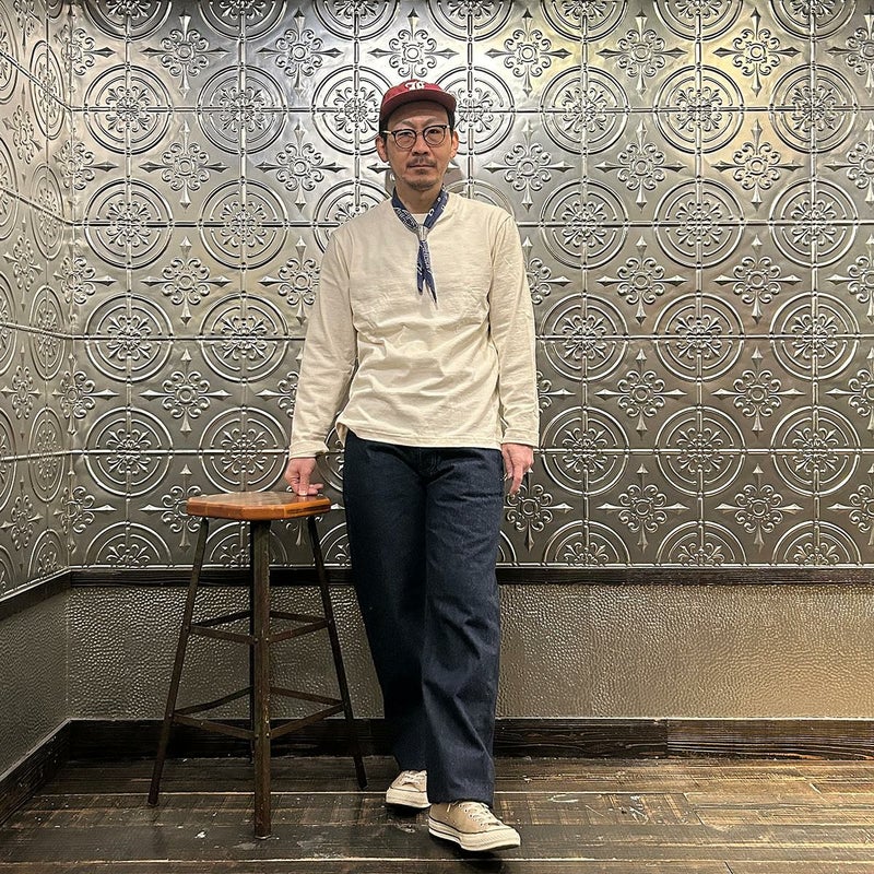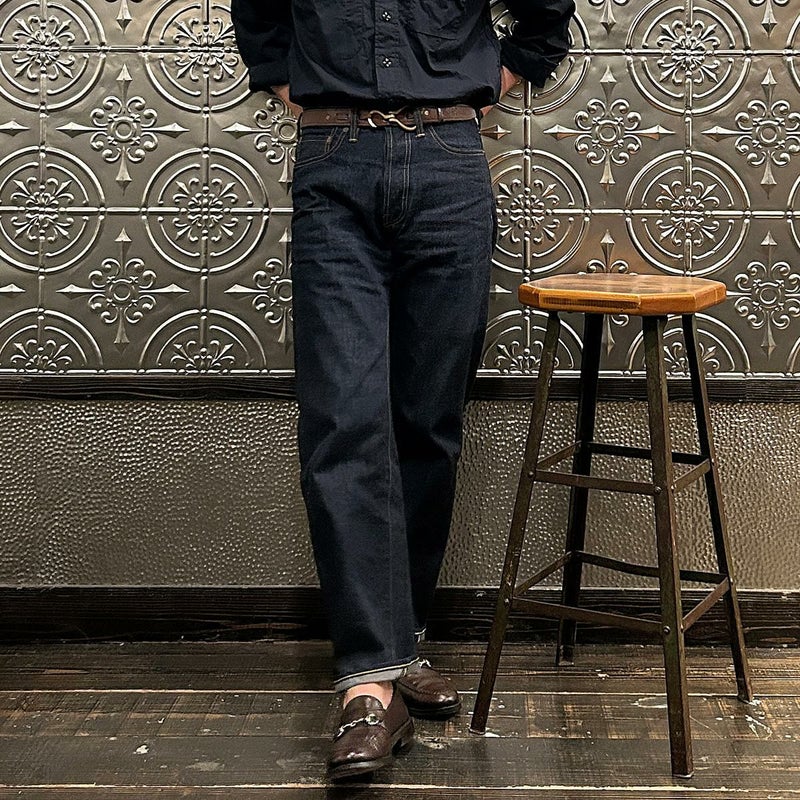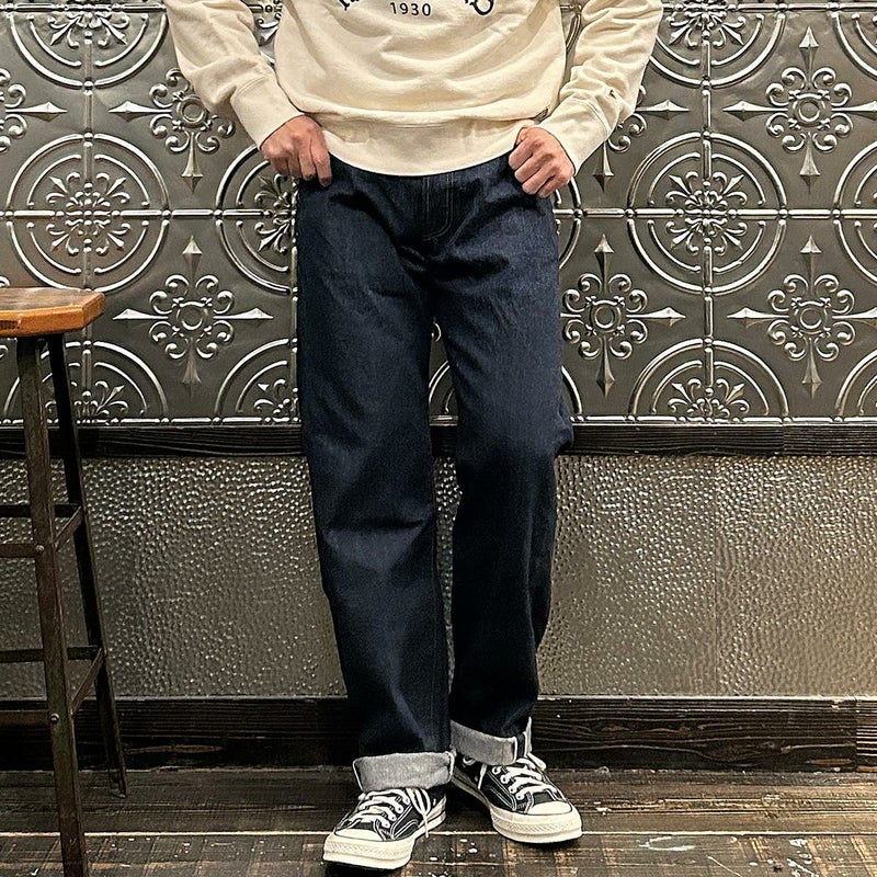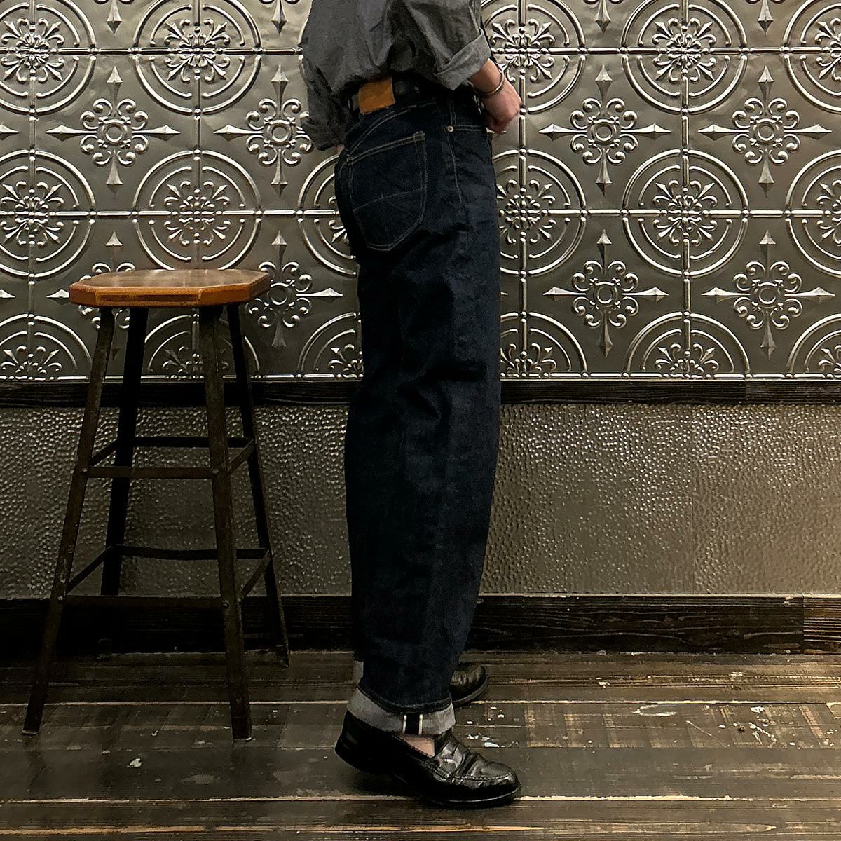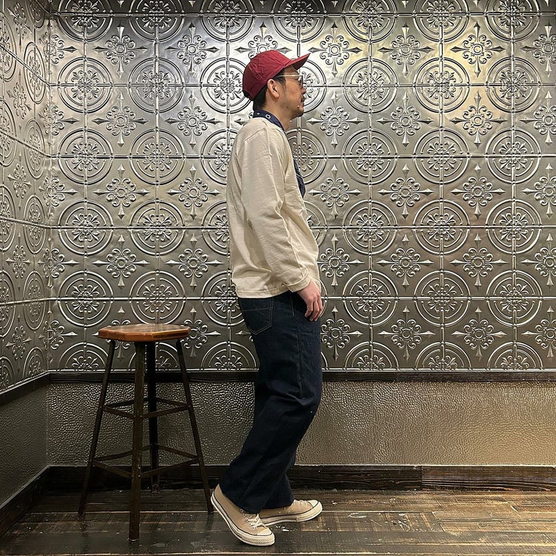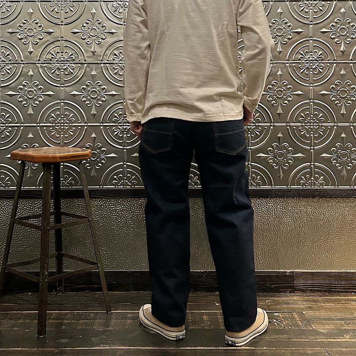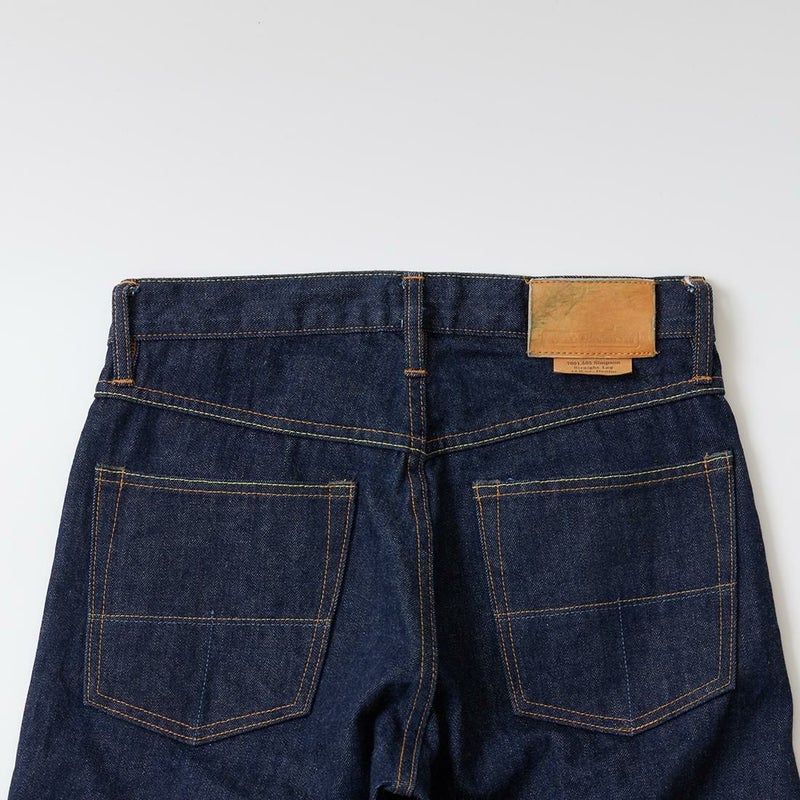 2008年創業アメリカのサンフランシスコに拠点をおくTELLASON(テラソン)の日本代理店別注モデル「SIMPSON シンプソン」。日本のカイハラ社の14オンスのミミ付きデニムをサンフランシスコの自社工場で縫製。レザーパッチはポートランドのTANNER GOODS(タナーグッズ)、リベットもケンタッキー州のメーカーによるアンティークカッパーを使用。アメリカでモノ作りをする事に拘りを持つブランドが手掛ける至極のデニムパンツ。程よい凹凸感とドライタッチ、ムラのあるヴィンテージライクな色味。穿きこむ事で更に楽しめるヴィンテージさながらの表情を持つセルヴィッチデニム。