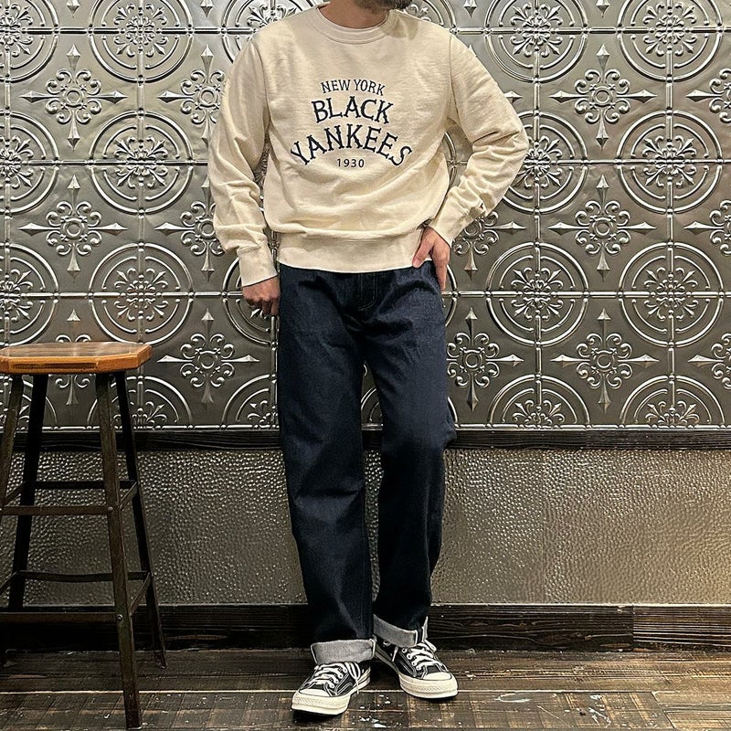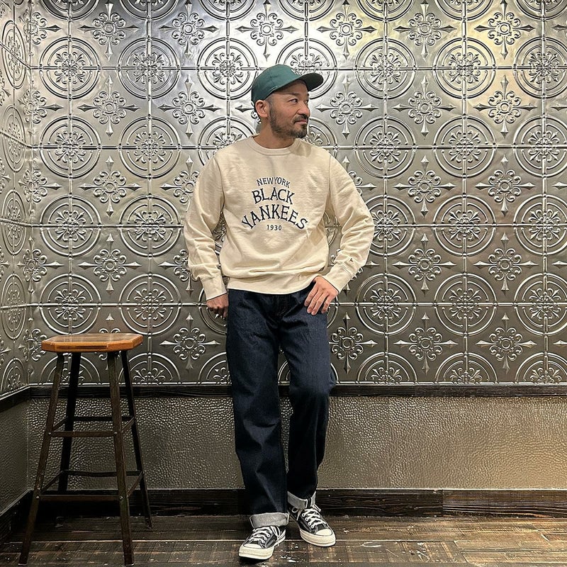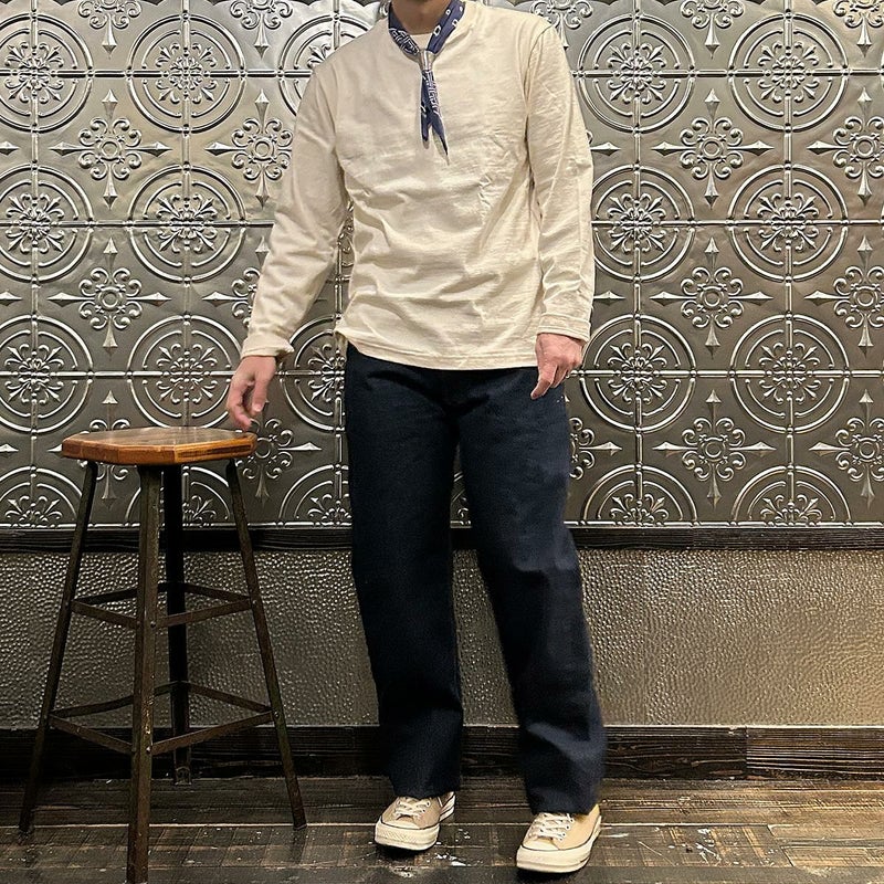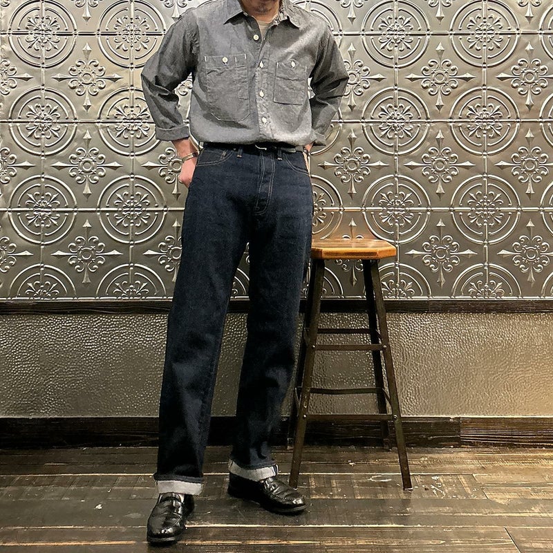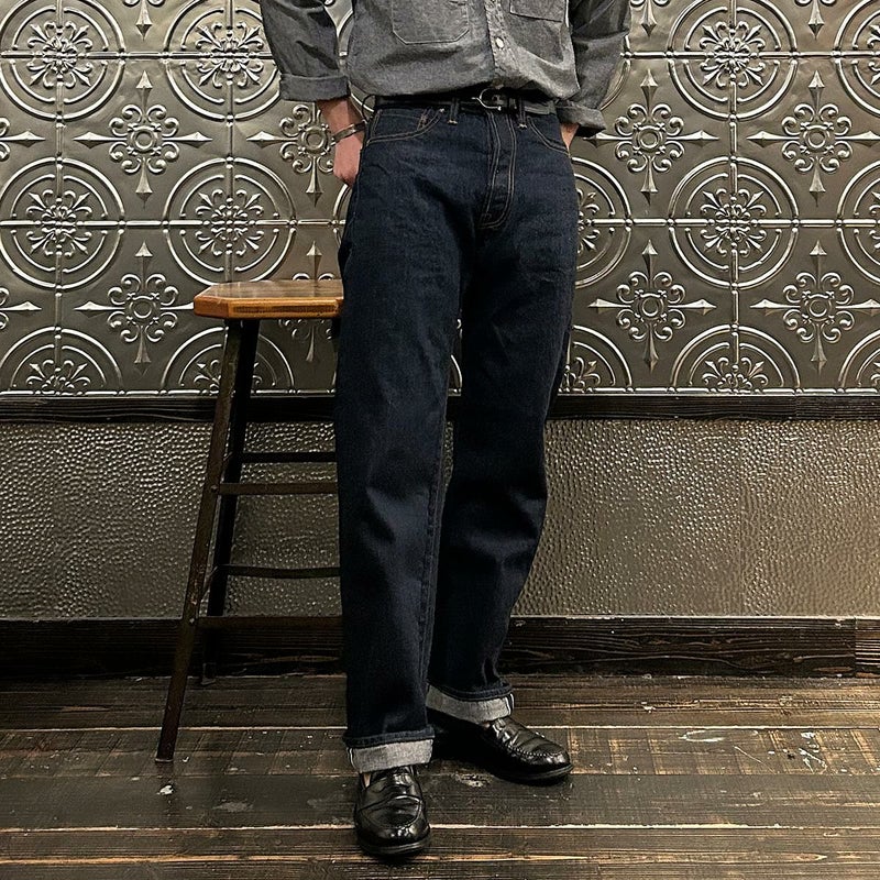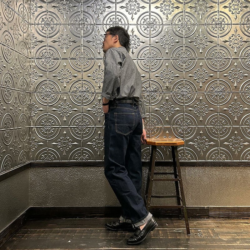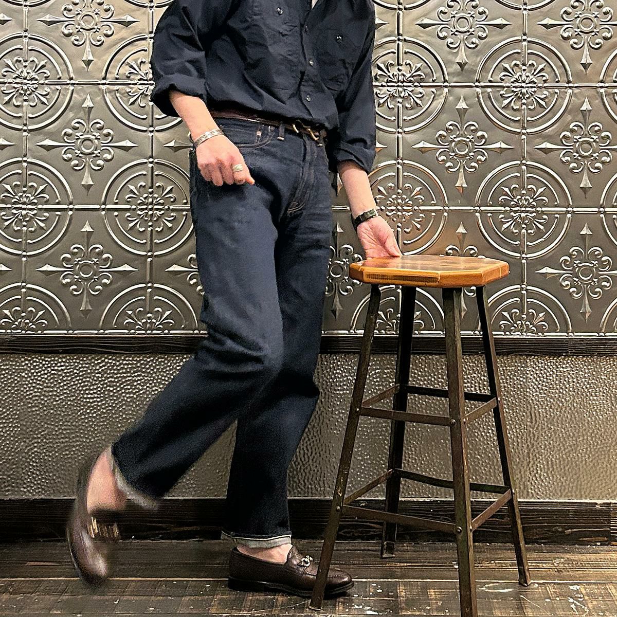 2008年創業アメリカのサンフランシスコに拠点をおくTELLASON(テラソン)の日本代理店別注モデル「SIMPSON シンプソン」。日本のカイハラ社の14オンスのミミ付きデニムをサンフランシスコの自社工場で縫製。レザーパッチはポートランドのTANNER GOODS(タナーグッズ)、リベットもケンタッキー州のメーカーによるアンティークカッパーを使用。アメリカでモノ作りをする事に拘りを持つブランドが手掛ける至極のデニムパンツ。程よい凹凸感とドライタッチ、ムラのあるヴィンテージライクな色味。穿きこむ事で更に楽しめるヴィンテージさながらの表情を持つセルヴィッチデニム。