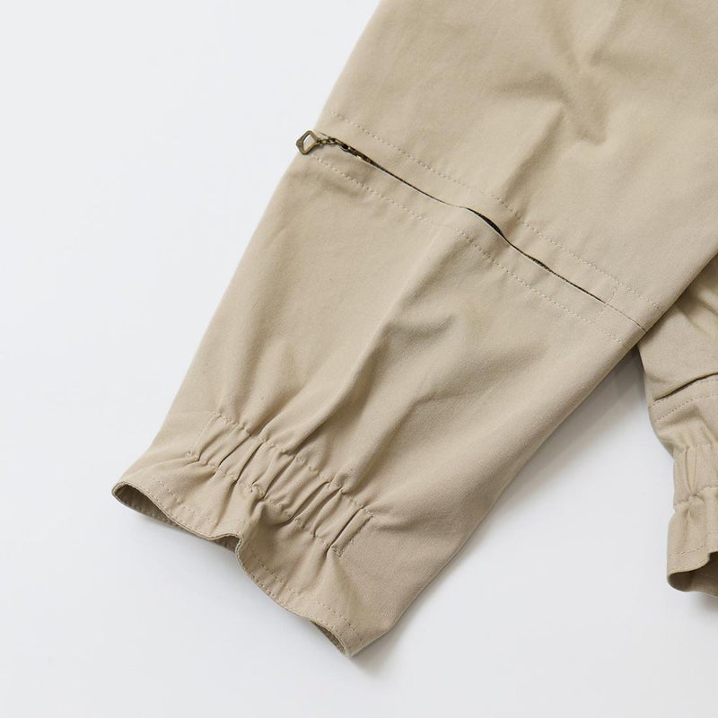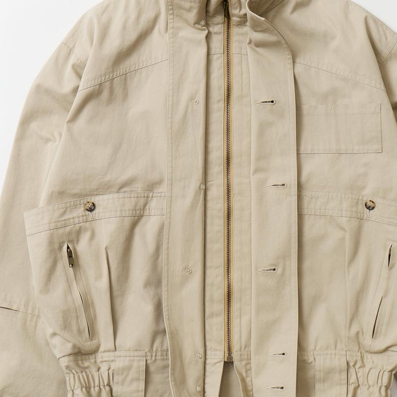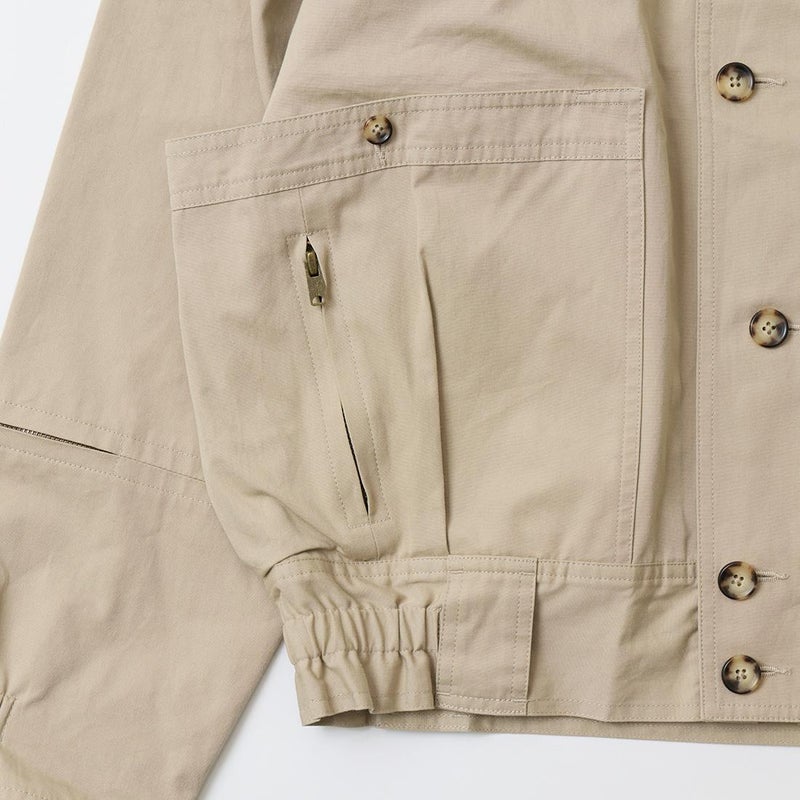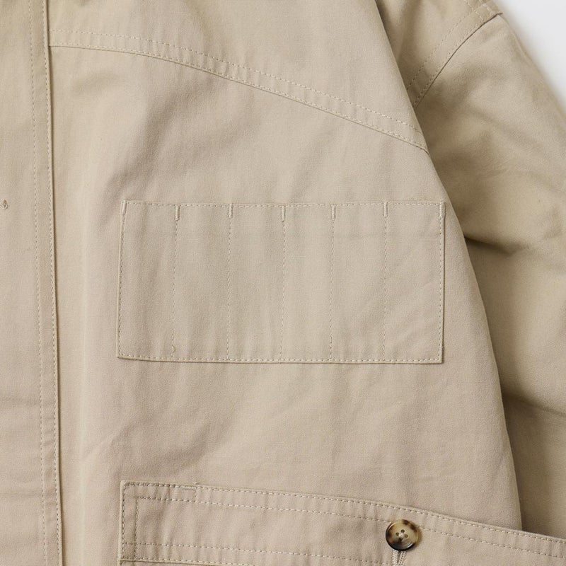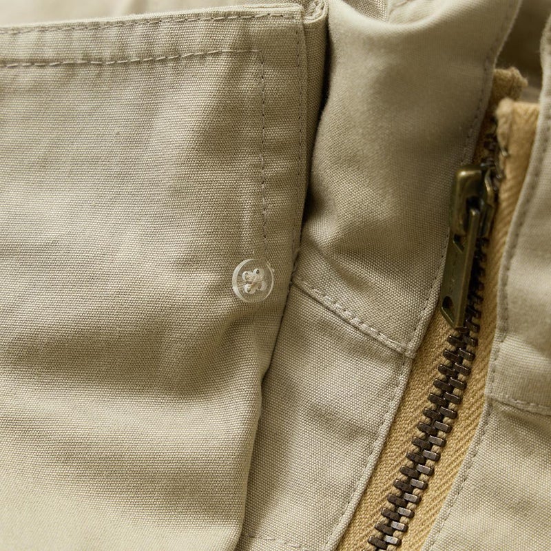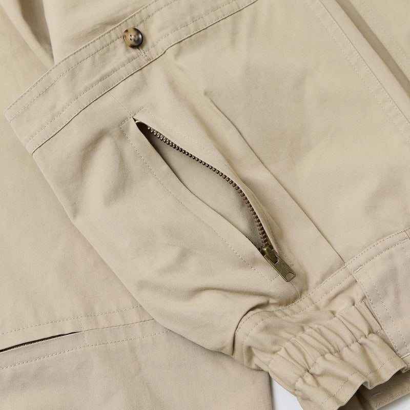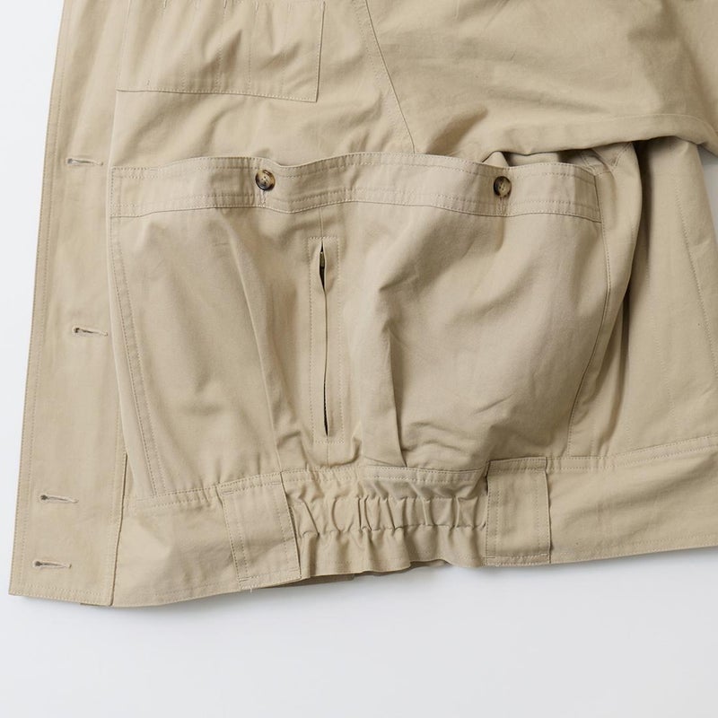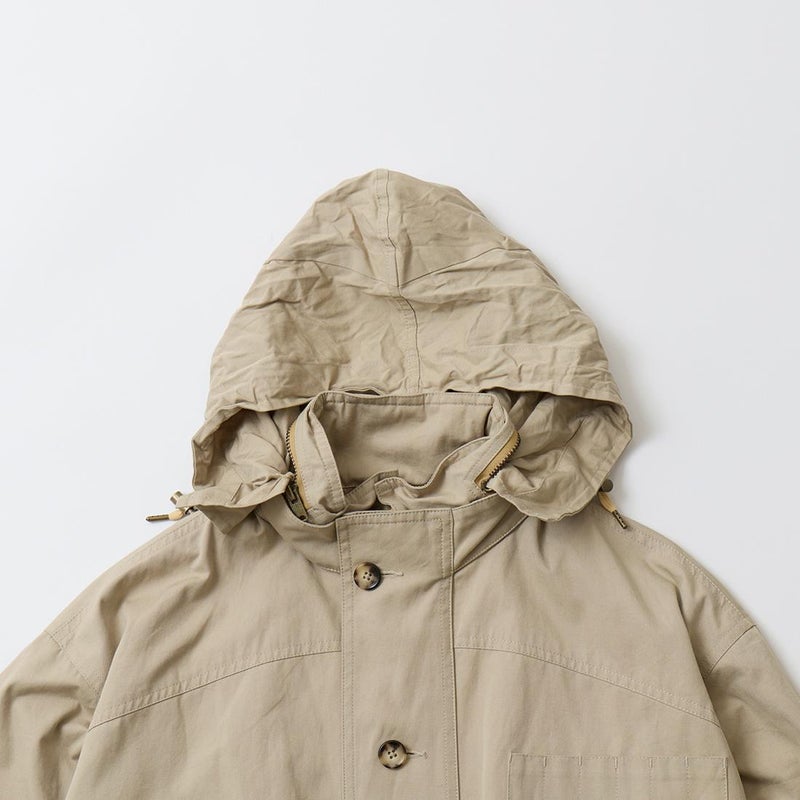 WILLIS & GEIGER(ウィリスアンドガイガー)のHUNTER HIKER。ブランドを代表する屈指の名品「ハンターハイカー」。当時ニューヨークに拠点を置く富裕層達が創設したExplorer's Club「探検倶楽部」のメンバーの為に考案されたモデル。その名の通りハンター達が狩猟の場に向かうまでに着用するアウターとして開発。ウィリスアンドガイガーのモノ作りの根本にある「いかに両手を塞がず荷物を運ぶか?」を体現するディテールが詰まっています。袖口のジッパーポケットはコンパス、小型折り畳みナイフなどを納める為。特徴的な両脇から背中にわたるポケットは救命用具を入れるために大きく配置。取りやすい工夫もされています。背中にはキルティングが施され、バックパックの緩衝材としての機能も有し、転んだ時のクッションの役割も担っていました。ウェストのベルトループはバックバックのベルトを通し固定する為。前身の風防デザインはボタンを左右にずらすことで生地が無駄に泳がずPコートのダブルブレストのような防風性能を最大化させる仕組みになっています。更に表地と同じブッシュポプリンを裏地にも使う贅沢な仕様。動きやすさと堅牢性を確保する為。赤タグ時代のオリジナルブッシュポプリンのカラー、組織共に完全再現に近い状態で仕上げ、ジップも当時と同じ金型のTALON(タロン)を使用。当時と同じようにコンピューターによるCADを使わずにマスターパターン(型紙)は手で行い自然な丸みに拘って仕上げています。独特の丸みを帯びたシルエットが特徴的な名品ハンターハイカー。 【26FW Pre-Order】
