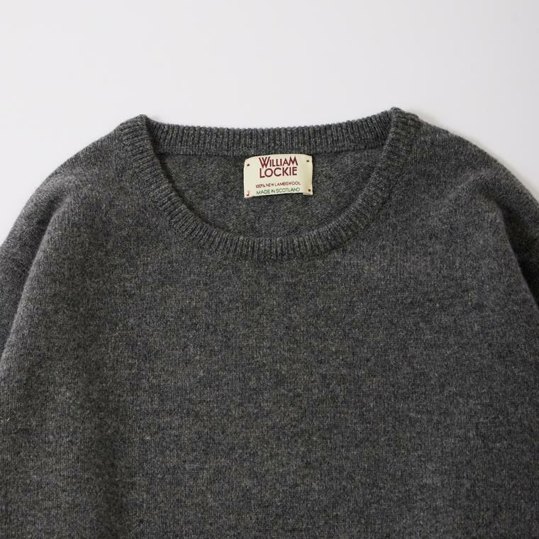 WILLIAM LOCKIE (ウィリアム ロッキー) LAMBSWOOL CREW NECK SWEATER - FLANNEL