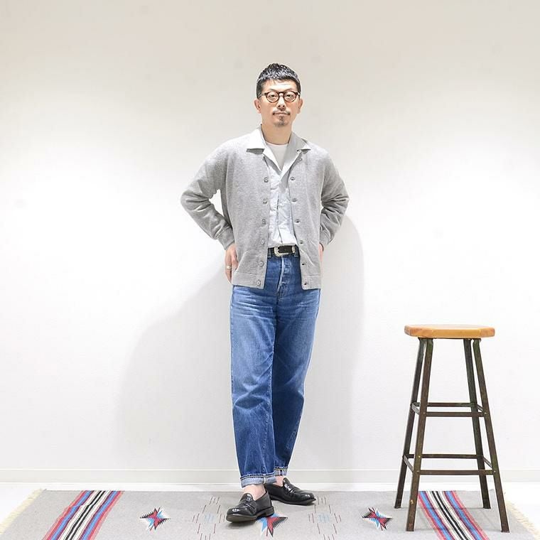 メンズ ラムウール Vネック ニット カーディガン スコットランド製