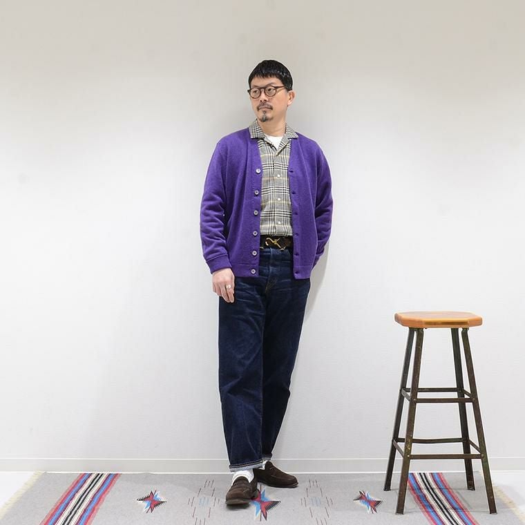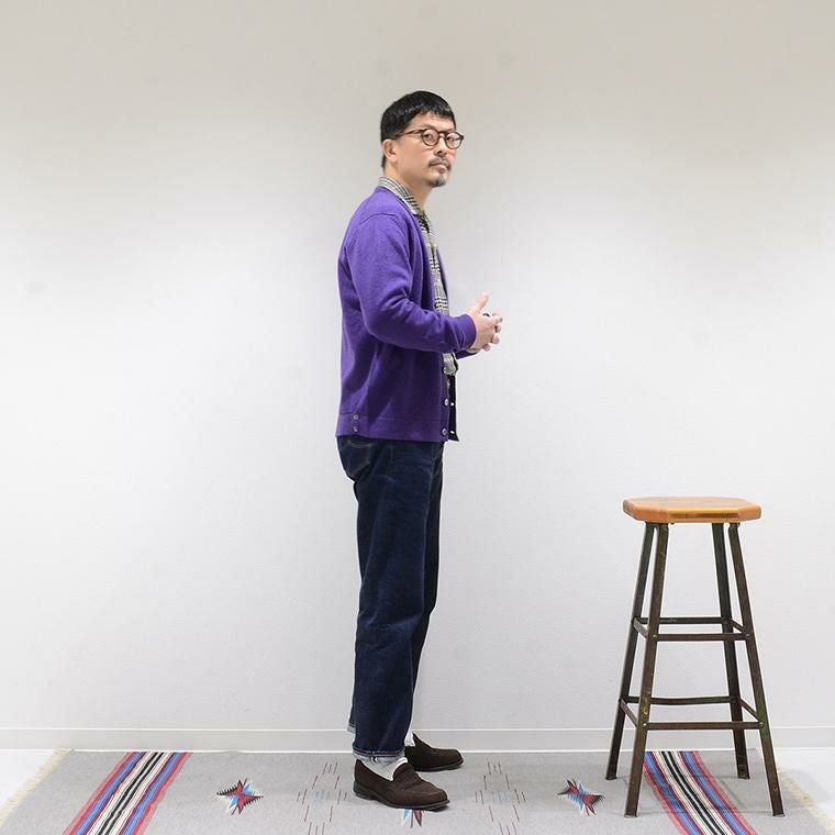 メンズ ラムウール Vネック ニット カーディガン スコットランド製