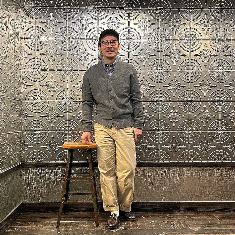 メンズ ラムウール Vネック ニット カーディガン スコットランド製