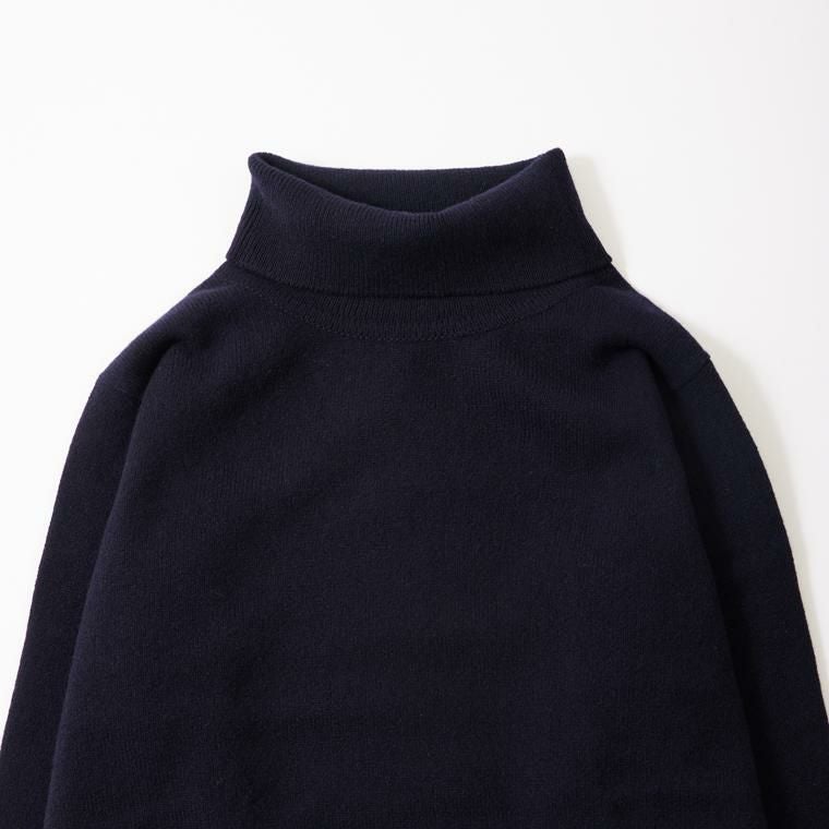 WILLIAM LOCKIE (ウィリアム ロッキー) LAMBSWOOL JUMPER ROLL NECK SWEATER - NAVY