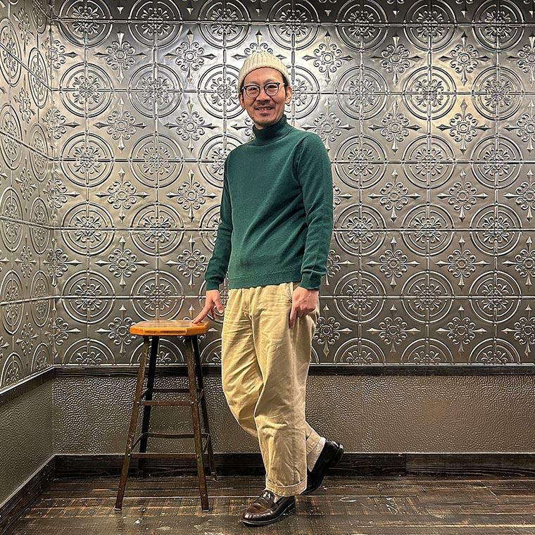 WILLIAM LOCKIE (ウィリアム ロッキー) LAMBSWOOL JUMPER ROLL NECK SWEATER - NAVY