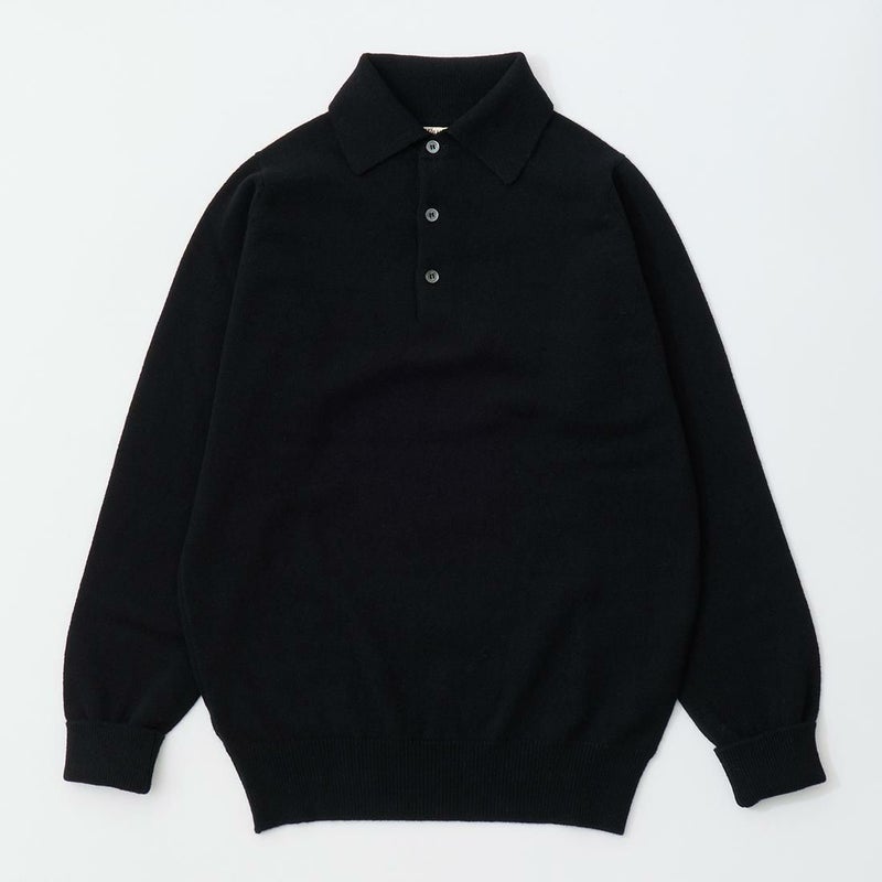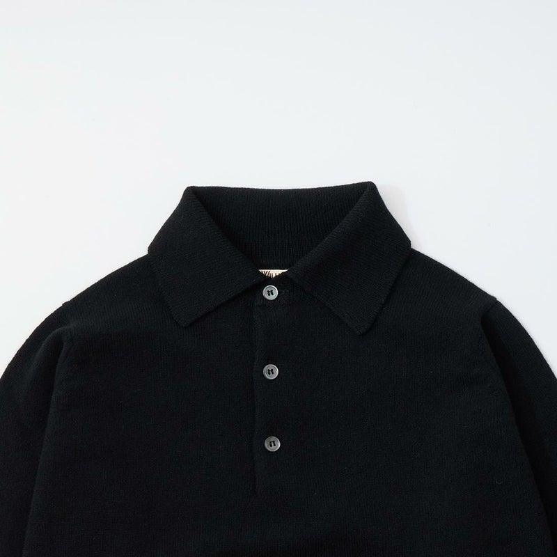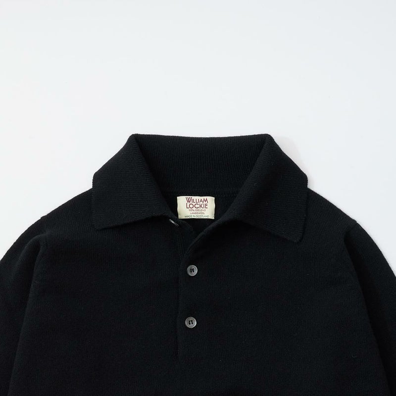 スコットランド発老舗ニットブランド「WILLIAM LOCKIE(ウィリアム ロッキー)」のROB SPORT SHIRT LAMBSWOOL。ラムウールを使用した長袖ニットポロ。ブランドのインラインはカシミヤのみの展開の所、ラムウールに変更して別注したモデル。一般的なニットポロよりも襟がしっかりとした作りでジャケットの下に着てもキレイな襟の立ち上がり。中厚のラムウール仕様で単品でも重ね着要員としても優秀な一枚。袖口のリブは折り返して着る仕様。