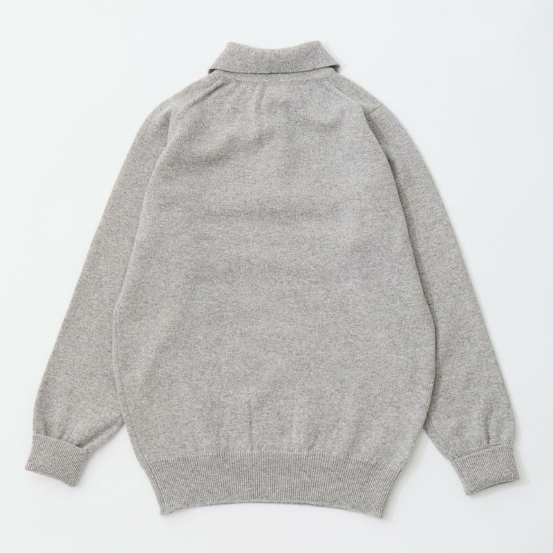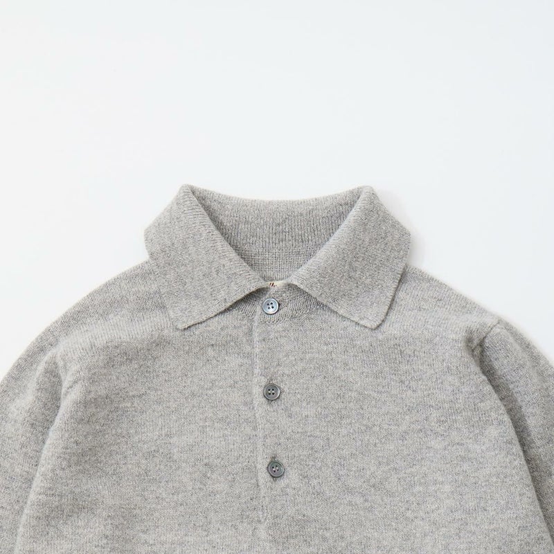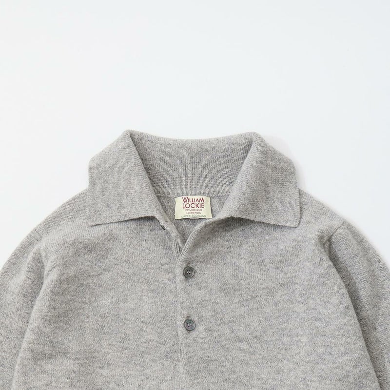 スコットランド発老舗ニットブランド「WILLIAM LOCKIE(ウィリアム ロッキー)」のROB SPORT SHIRT LAMBSWOOL。ラムウールを使用した長袖ニットポロ。ブランドのインラインはカシミヤのみの展開の所、ラムウールに変更して別注したモデル。一般的なニットポロよりも襟がしっかりとした作りでジャケットの下に着てもキレイな襟の立ち上がり。中厚のラムウール仕様で単品でも重ね着要員としても優秀な一枚。袖口のリブは折り返して着る仕様。