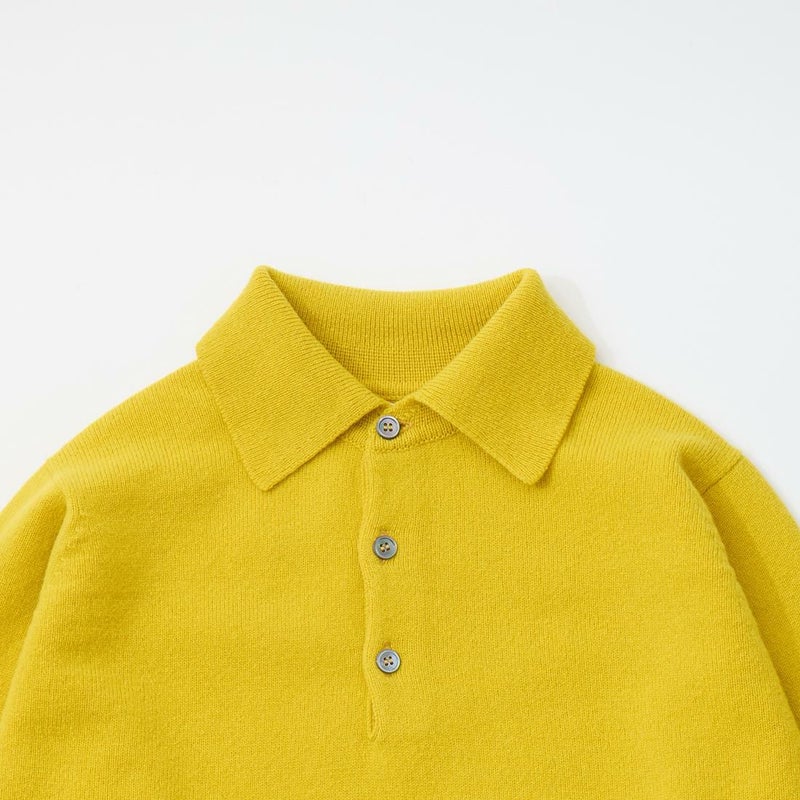 スコットランド発老舗ニットブランド「WILLIAM LOCKIE(ウィリアム ロッキー)」のROB SPORT SHIRT LAMBSWOOL。ラムウールを使用した長袖ニットポロ。ブランドのインラインはカシミヤのみの展開の所、ラムウールに変更して別注したモデル。一般的なニットポロよりも襟がしっかりとした作りでジャケットの下に着てもキレイな襟の立ち上がり。中厚のラムウール仕様で単品でも重ね着要員としても優秀な一枚。袖口のリブは折り返して着る仕様。