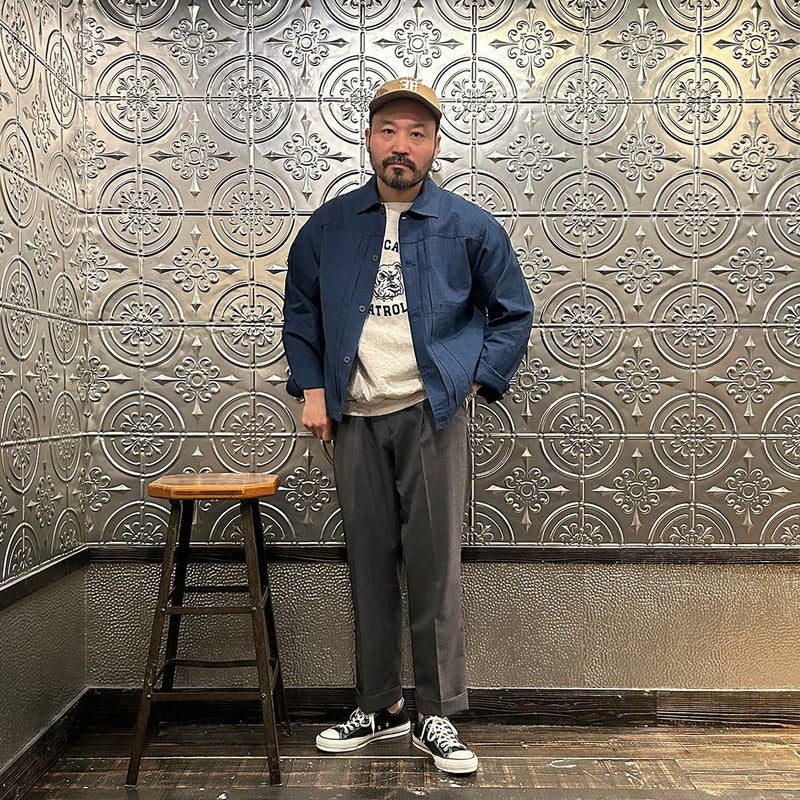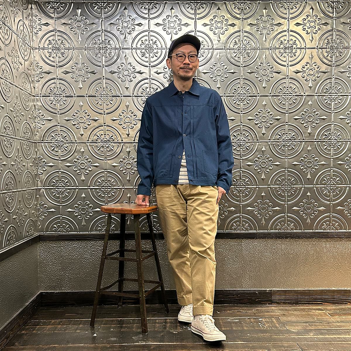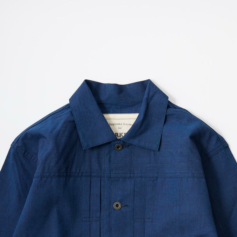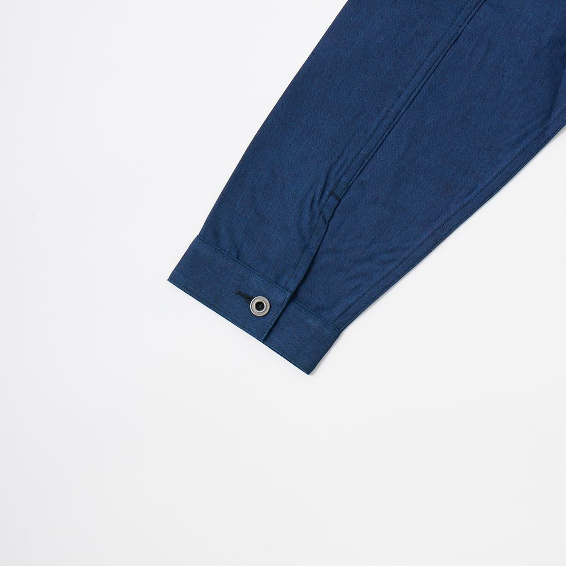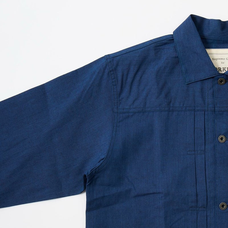 WORKERS(ワーカーズ)のLOT 213 CHAMBRAY。コットンシャンブレー素材を使用したGジャンタイプのジャケット。フロント左側にポケット1つのみのシンプルなデザイン。ボタンはメタルの糸付け。インディゴシャンブレーはロープ染色でタテ・ヨコ糸を染めてから織られた生地。ブラウンはタテが硫化染でヨコが生成り。5オンス程度の厚み。経年変化も楽しみな1着。