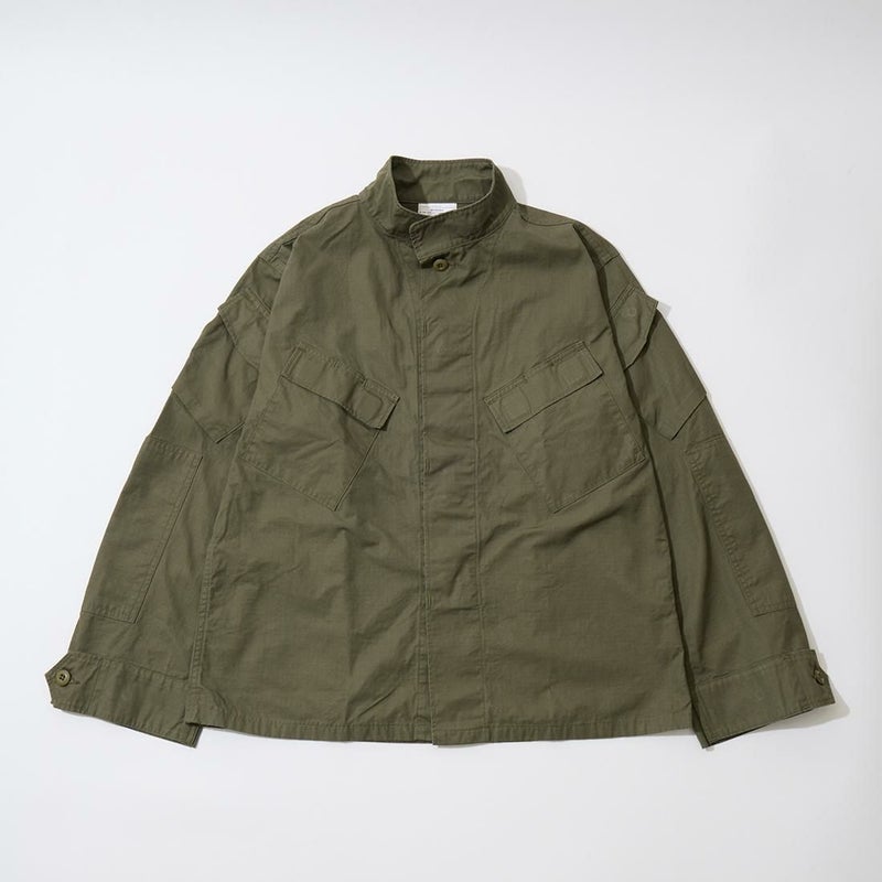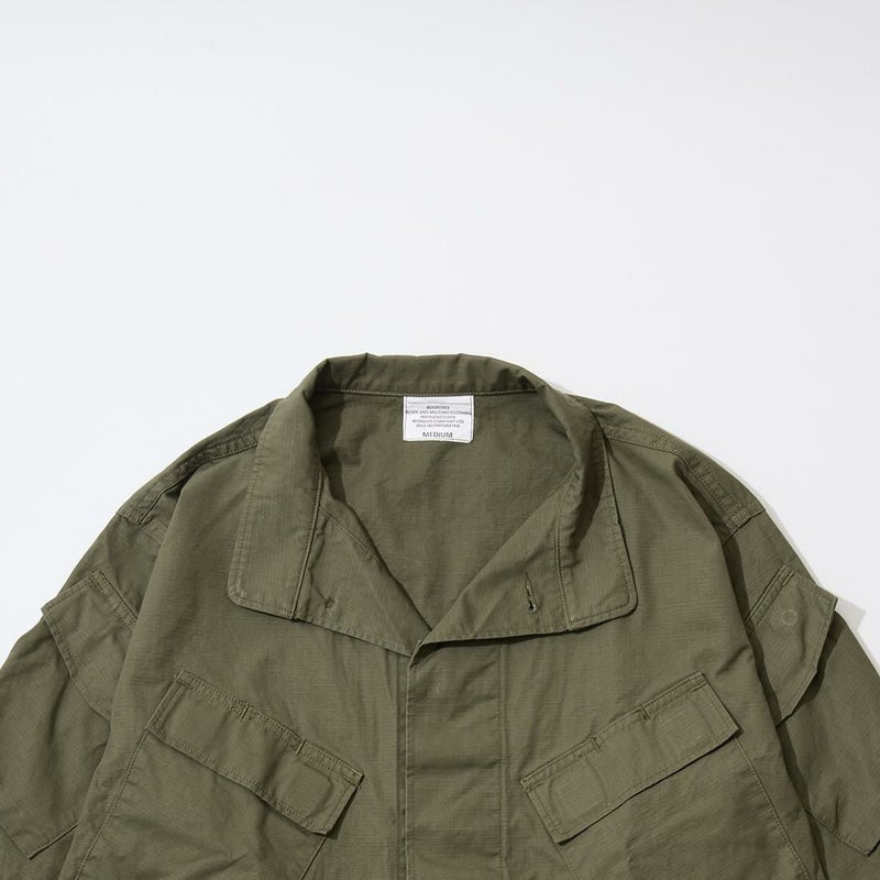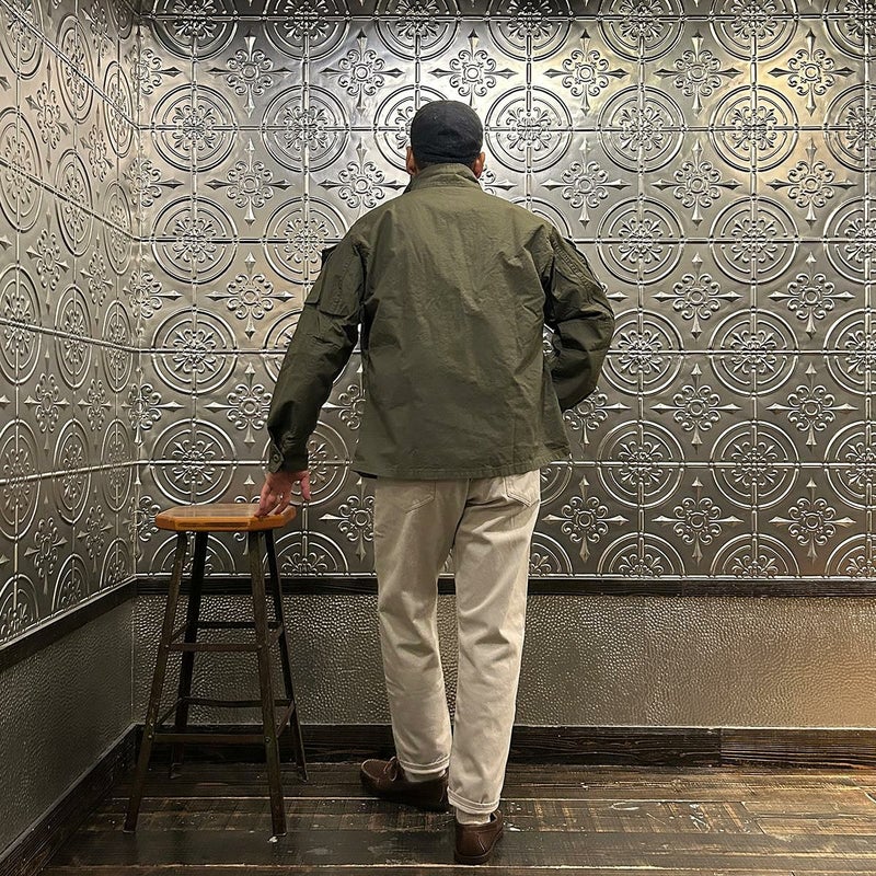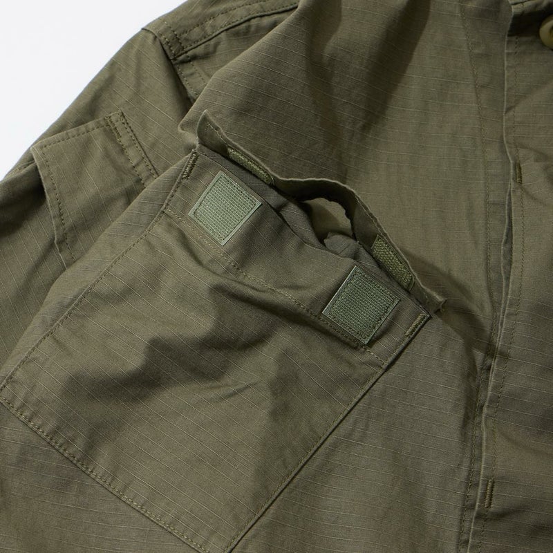 WORKERS(ワーカーズ)のFIELD SHIRT RIPSTOP。現行のUSミリタリーの「マーパット」という迷彩柄のシャツジャケットがデザインソースのフィールドシャツ。両胸にペン差し付きのフラップ付きのマチ無しポケット。フラップの開閉はベルクロ。腕のポケットはフラップ+ 隠しボタン+片マチの凝ったディテール。肘には当て布を装備。生地は7オンスほどのコットンリップストップともう少し厚いタイガーカモリップストップ。洗い込むことで生まれるパッカリング等の経年変化もお楽しみ頂ける1着。