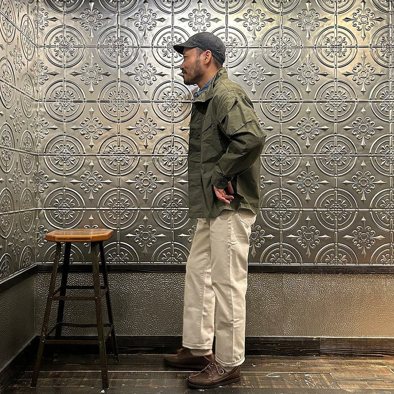 膨大な古着のアーカイブと、豊富な知識を持つWORKERSの代表は、実際の古着を細かく研究し、その製品が作られていたメーカーや背景、歴史、資料に至るまで調べ上げ、製品づくりのヒントにしてモノづくりに取り組んでいる探究心から生まれる本物志向への拘り。そ