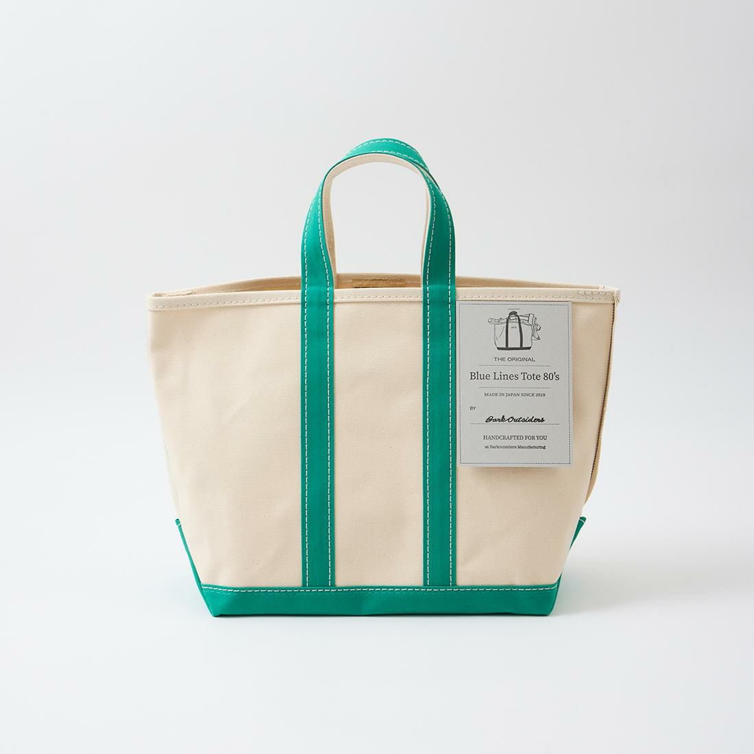 他の画像を見る ブルーライン トート 80年代 ミディアム 日本製 【次回入荷 2026年4月頃】Barkoutsiders (バークアウトサイダーズ) BLUE LINES TOTE 80's MEDIUM - GREEN 販売価格 ¥ 26,400 税込 × 在庫切れ お気に入りに登録する