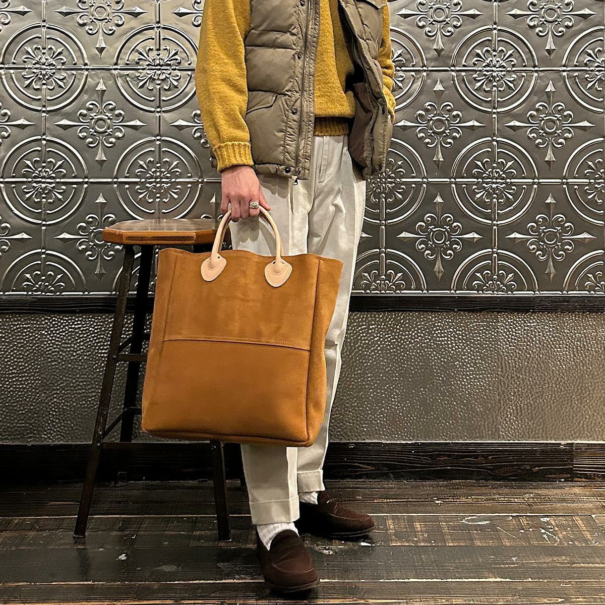 他の画像を見る Explorer別注 スエードレザー ミニトートバッグ メンズ アメリカ製 HERITAGE LEATHER (ヘリテイジレザー) SUEDE LEATHER MINI TOTE BAG - TABACCO SUEDE/LT BROWN LATIGO - Explorer別注 販売価格 ¥ 29,150 税込 × 在庫切れ お気に入りに登録する