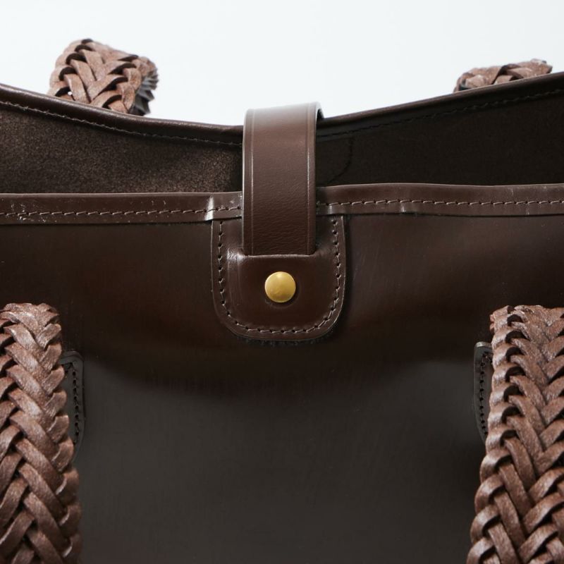 BEORMA LEATHER COMPANY(ベオーマレザーカンパニー)のBRIDLE LEATHER THE BODLEIAN。経年変化も楽しみなイングリッシュブライドルレザーを使用した英国クラシックな雰囲気が漂うオールレザートートバッグ。内装はポケットをひとつ付けたシンプルな構造。裏地の無いアンラインド仕立てにすることでブライドルレザーの素材感を活かした仕上がり。ボトムのコーナーは革を重ねて補強。ハンドルにはカウハイドを丹念に編み込んだメッシュレザーを採用。使い始めこそ堅いイングリッシュブライドルレザーですが、使うほどに次第に手に馴染み、味わいと美しさが増していきます。