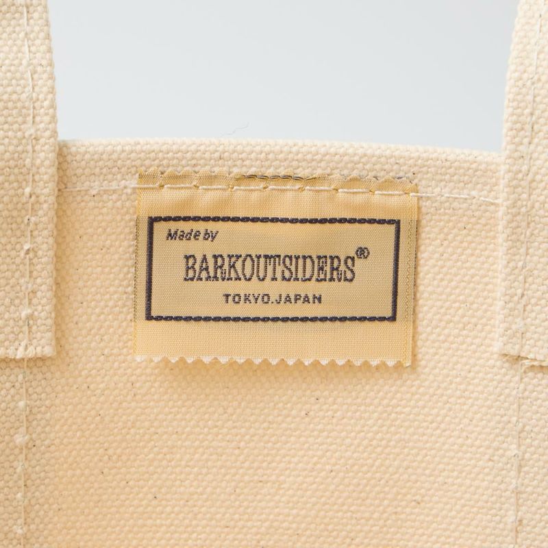 Barkoutsiders(バークアウトサイダーズ)のBLUE LINES TOTE 80's MEDIUM。国産の老舗キャンバスメーカーに特注した24ozパラフィン帆布を使用したキャンバストート。80年代のキャンバストート独特の雰囲気を日本の生産背景を活かして再現。狭幅のショートハンドル、サイドのブルーライン、現行よりボディの背が少し高かったフォルムなど細かい部分まで拘ったトート。スタイルを選ばないデザイン。経年変化も楽しみな逸品。