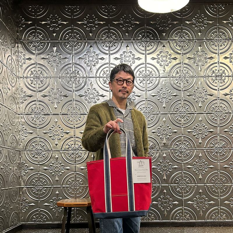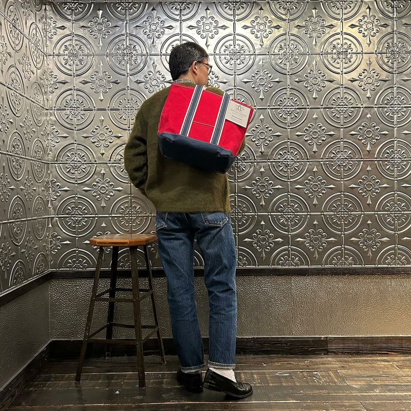 Barkoutsiders(バークアウトサイダーズ)のBLUE LINES TOTE 80's DX TALL LIMITED。80年代DXモデルの復刻版。耳付きシャトル織機で織られた別注ブルーラインキャンバスを使用したトートバック。80年代のキャンバストート独特の雰囲気を日本の生産背景を活かして再現。コットンテープを挟み込んだデラックス仕様。現存しない 4.5号帆布相当の特注高密度キャンバス。 80年代のTALLサイズを忠実に再現。総生産数が限定40個、店頭販売のみのスペシャルモデル。