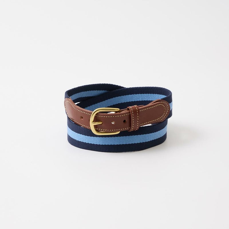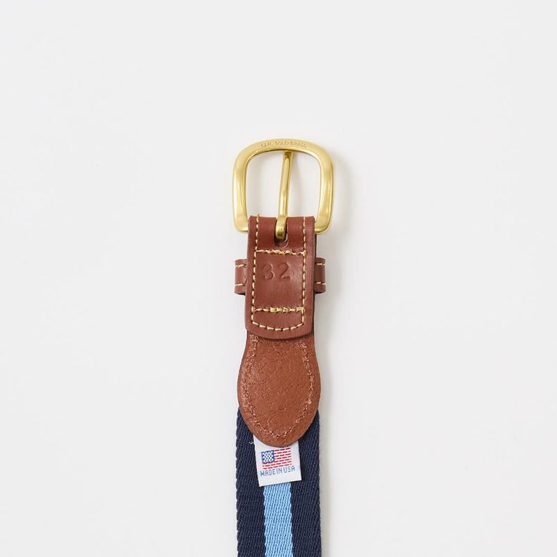 LEATHERMAN BELT (レザーマンベルト) 1.25 STRIPED COTTON SURCINGLE W/YELLOW STITCHED TABS BRASS HARNESS BUCKLE - NAVY_BLUEBIRD