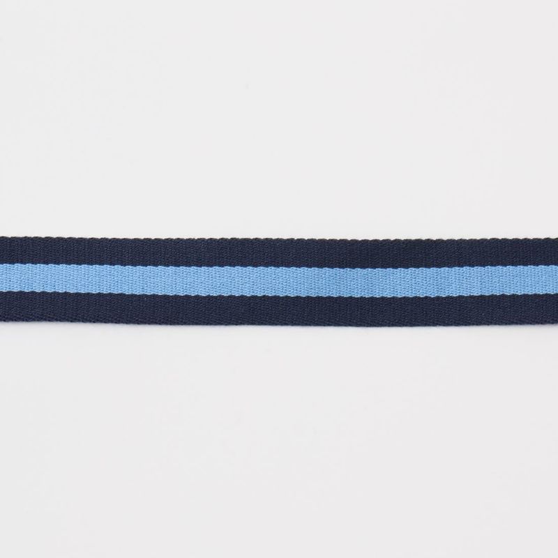 5. LEATHERMAN BELT (レザーマンベルト) 1.25 STRIPED COTTON SURCINGLE W/YELLOW STITCHED TABS BRASS HARNESS BUCKLE - NAVY_BLUEBIRD