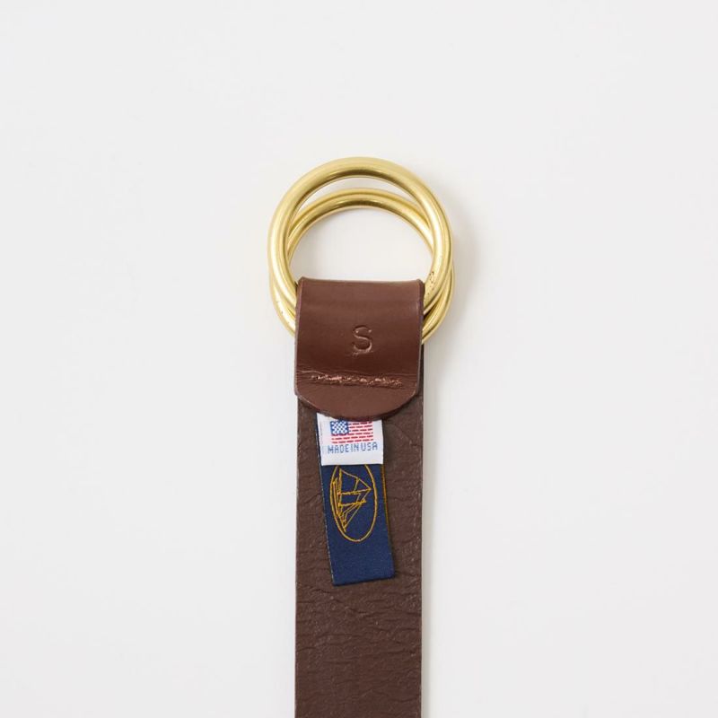 LEATHERMAN BELT (レザーマンベルト)の LEATHER O RING BELT W/BRASS BUCKLE。オールレザーのダブルリングベルト。バックル部分にボリュームがでるダブルリングバックルなのでスタイリングのちょっとしたアクセントになってくれます。シンプルなデザインで3cm幅なのでパンツ、スタイリングを選ばずに使用して頂けます。レザータイプのモデルなので経年変化も楽しんで頂ける1本。アメリカ生産というところも見逃せないポイントです。