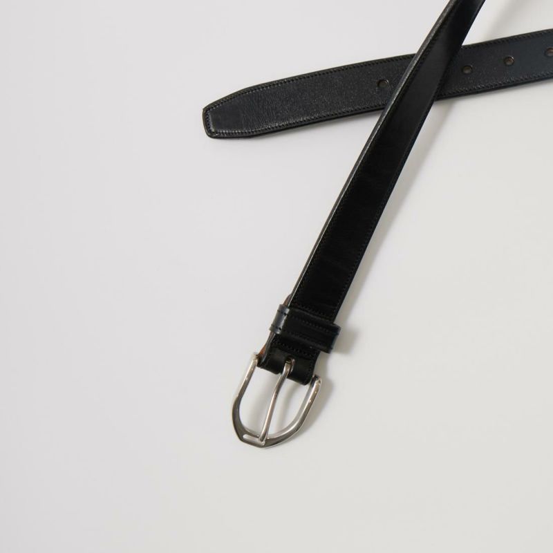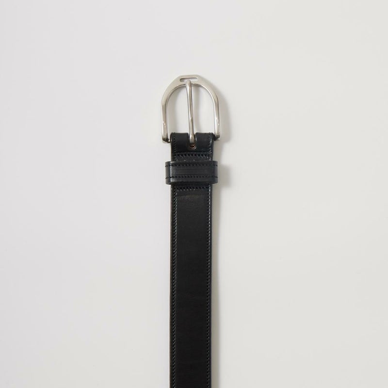 5. TORY LEATHER (トリーレザー) 1.25 INCH STITCHED BRIDLE LEATHER STAINLESS STEEL STIRRUP BUCKLE BELT - BLACK