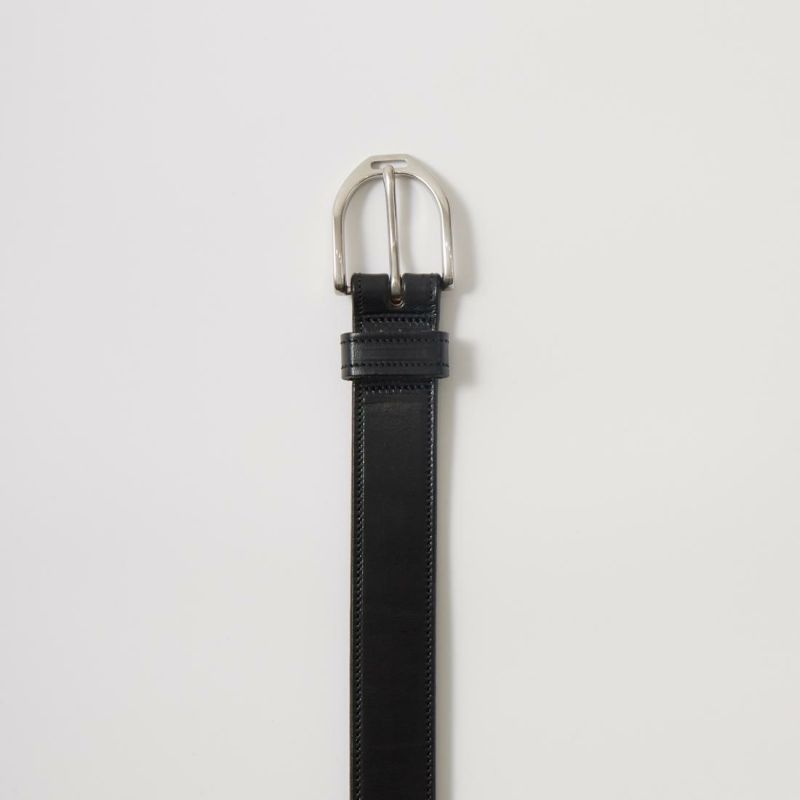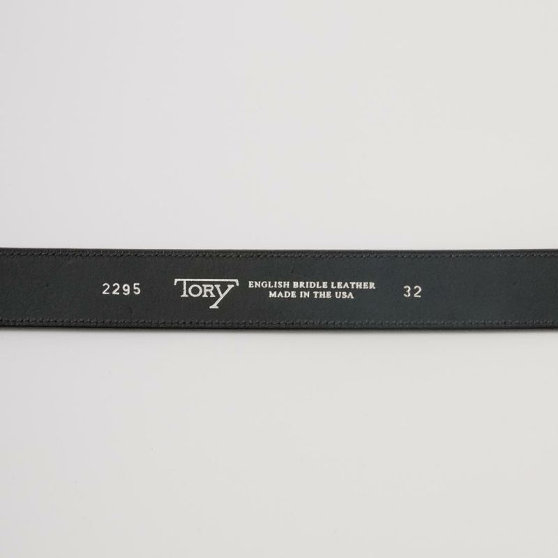 TORY LEATHER (トリーレザー) 1.25 INCH STITCHED BRIDLE LEATHER STAINLESS STEEL STIRRUP BUCKLE BELT - BLACK