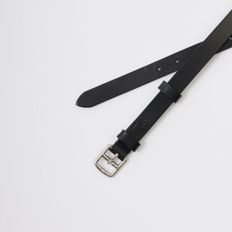 BEORMA LEATHER COMPANY(ベオーマレザーカンパニー)のBRIDLE LEATHER 22mm DOUBLE LOOP BELT。ワンピース(一枚革)仕立てで作られたブライドルレザーベルト。22mm幅のナローベルト。ベルトループは伝統的なダブルループ仕様を継承。馬具の鐙(あぶみ)部分に使われている特徴的なバックルを採用。艶やかな光沢を放つ真鍮ニッケルコーティングのバックル。男性のみならず女性にも使いやすい1本。