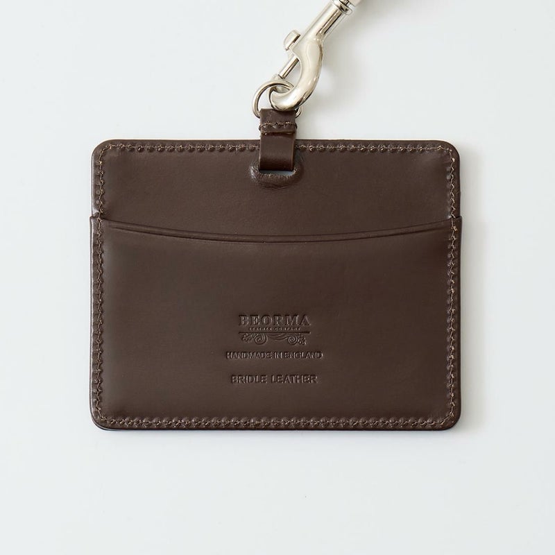 BEORMA LEATHER COMPANY(ベオーマレザーカンパニー)のBRIDLE LEATHER ID CARD HOLDER。イングリッシュブライドルレザーを使用したIDカードホルダー。前面と背面にカードスロットを装備。ストラップにはバックルが装備されておりサイズ調節可能。トリガーフックによりカードフォルダーの取り外しが容易に行えます。使い始めこそ堅いイングリッシュブライドルレザーですが、使うほどに次第に手に馴染み、味わいと美しさが増していきます。