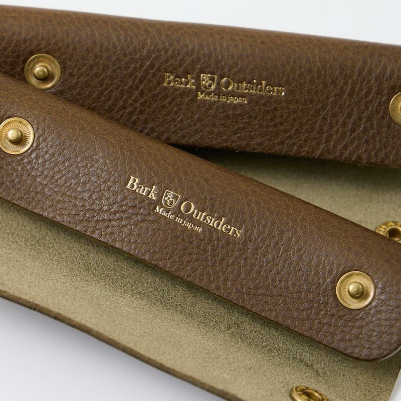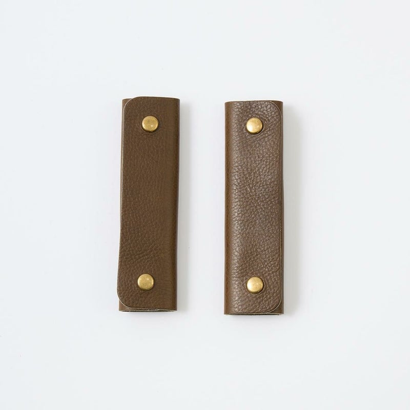 Barkoutsiders(バークアウトサイダーズ)のOLD CARRY HANDLE。長年の使用で傷みやすいトートバッグのハンドル部分に巻き付けるレザーハンドル。イタリアや日本の伝統あるタンナーで丁寧に鞣された革を使用。スナップは本真鍮メッキ。真鍮ならではのエイジングが期待できます。摩耗を防ぎつつ、上質なレザーが手に馴染み、艶と深みを増していく経年変化も楽しみ。キャンバストートと共にレザーのエイジングも一緒に楽しめます。