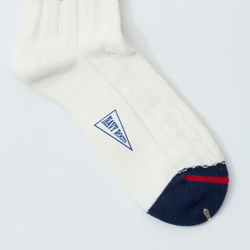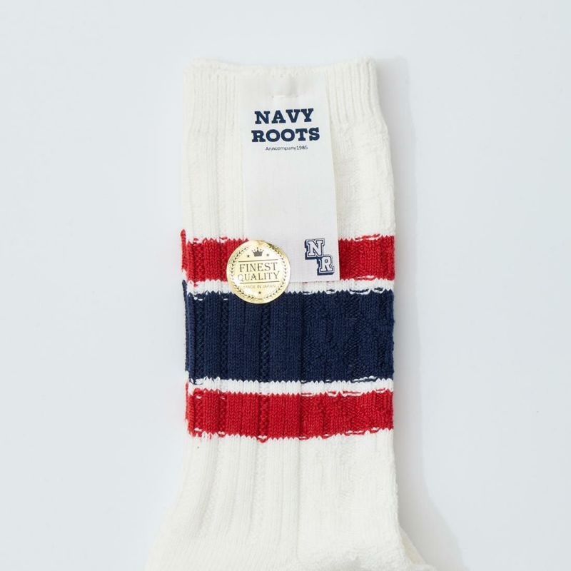 NAVY ROOTS (ネイビールーツ) CABLE BORDER SOCKS - NAVY