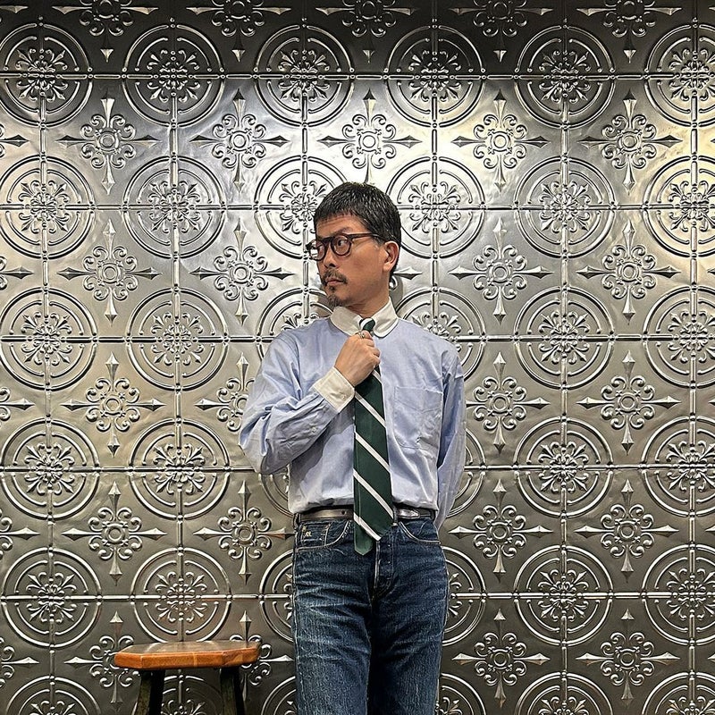 D.C. WHITE(ディーシーホワイト)のCLUB TIE REGIMENTAL。昔、イギリスでスカーフをネクタイにしていた縫製方法を現代的にアレンジし、剣先などのヘム部分をあえてミシンで叩きヴィンテージ感を出した独特な縫製仕様のネクタイ。大剣幅が8センチのスタンダードで使い勝手の良いサイズ。素材はシルクを使用。ツルッとした肌触りで光沢があり上品な雰囲気。レジメンタルは左上がりのアメリカ式。王道のアメリカントラッドブランドやイギリス、イタリアのタイブランドにはない隙間な一本。