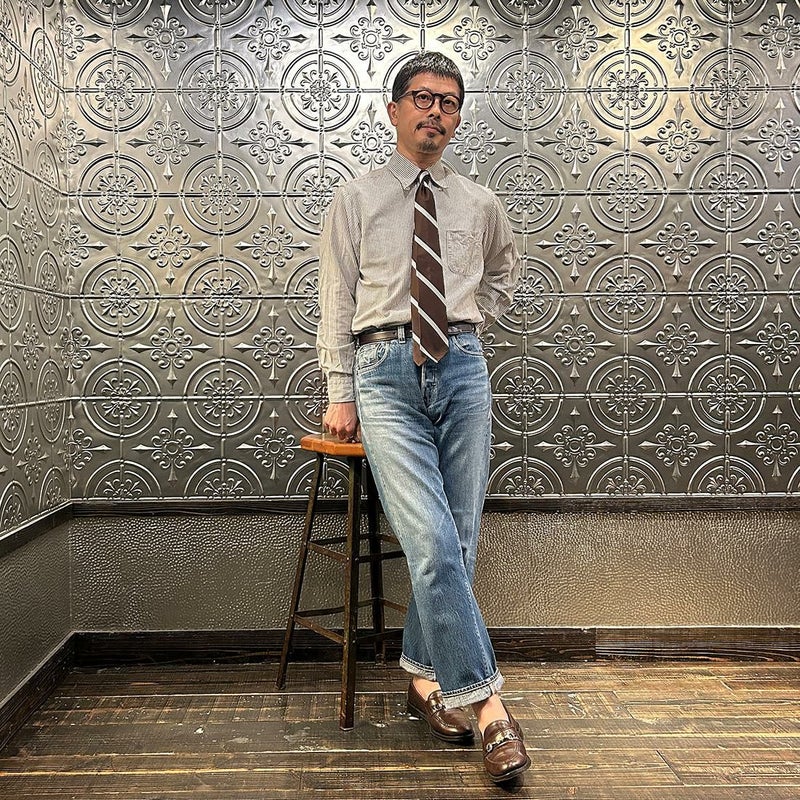 アイビー、トラッドスタイル好きな方にはオススメしたくなるレジメンタルタイシリーズ。紺ブレとの相性は勿論のこと、時々気分を変えたい時など様々な用途、スタイリングにも使って頂き易いデザイン。それにそこまで主張の強い配色ではないつくりから飽きずに長く使えるところも魅力的な1本ですね。