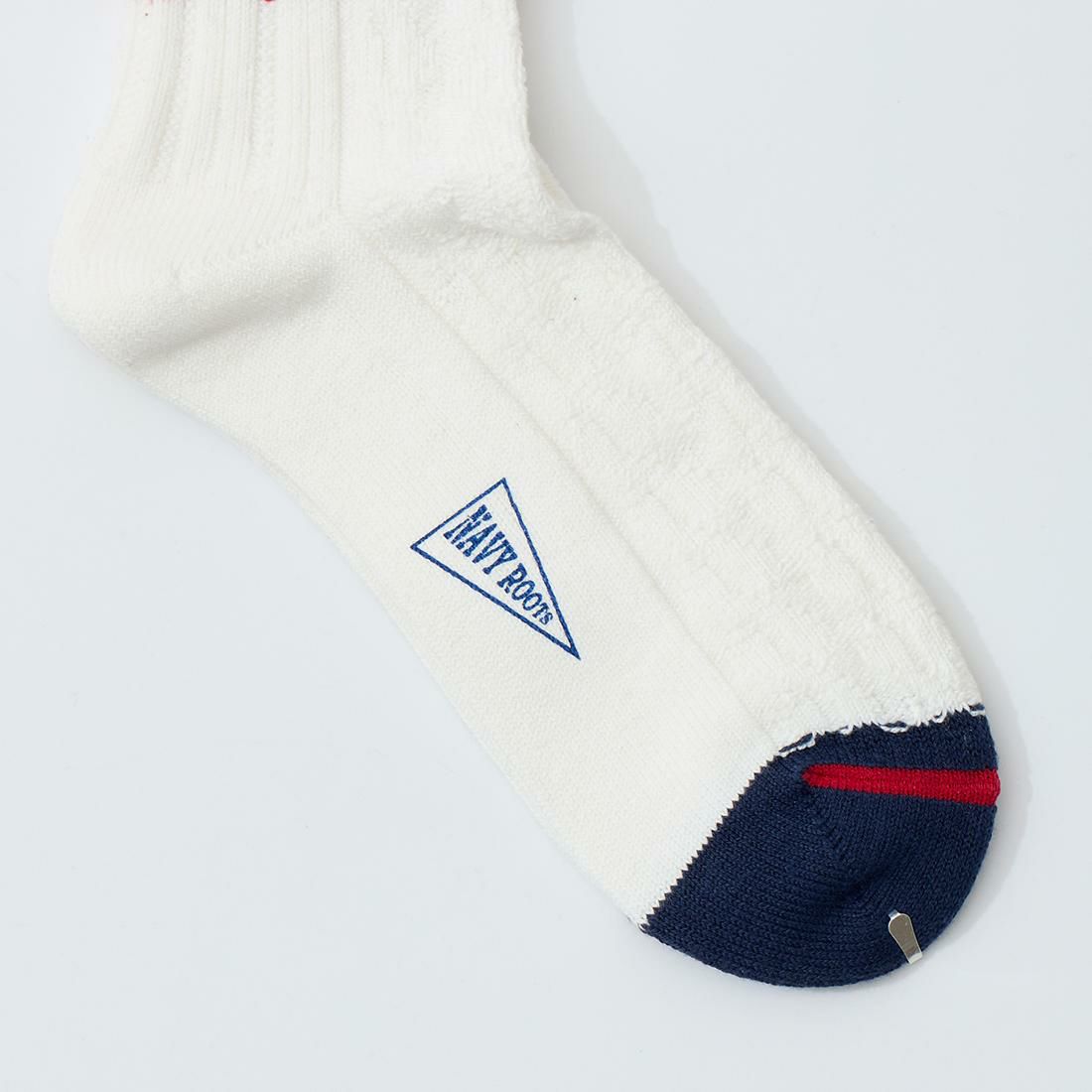 他の画像を見る ケーブル ボーダー ソックス 靴下 メンズ 日本製 NAVY ROOTS (ネイビールーツ) CABLE BORDER SOCKS - NAVY 販売価格 ¥ 1,980 税込 お気に入りに登録する
