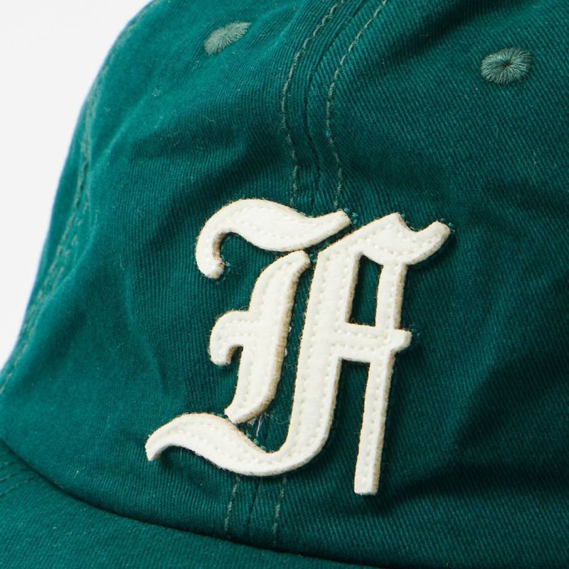 FELCO (フェルコ) NEW SHAPE TWILL STONE WASHED BB CAP W/OLD FONT "F" FELT - DK GREEN_DK GREEN STITCH_F NATURAL