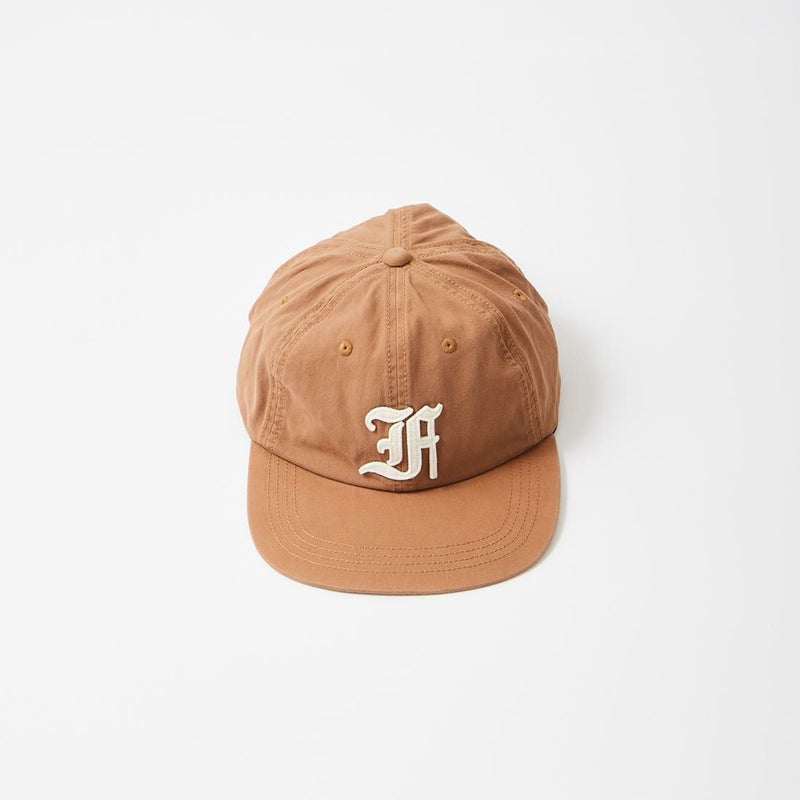 FELCO (フェルコ) NEW SHAPE TWILL STONE WASHED BB CAP W/OLD FONT "F" FELT - DK BROWN_DK BROWN STITCH_F NATURAL