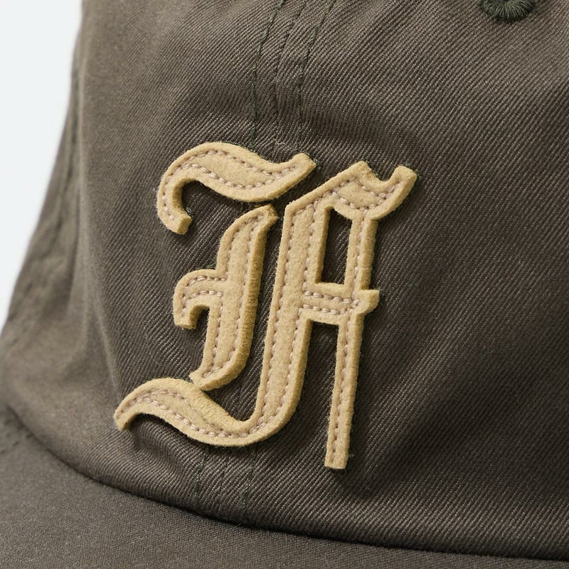 FELCO (フェルコ) NEW SHAPE TWILL STONE WASHED BB CAP W/OLD FONT "F" FELT - OLIVE_OLIVE STITCH_F_BEIGE
