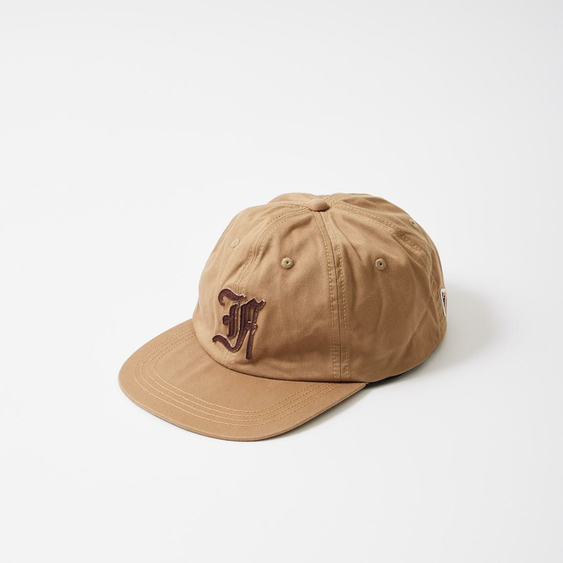 FELCO (フェルコ) NEW SHAPE TWILL STONE WASHED BB CAP W/OLD FONT "F" FELT - 32 DK TAN_TAN STITCH_F BROWN