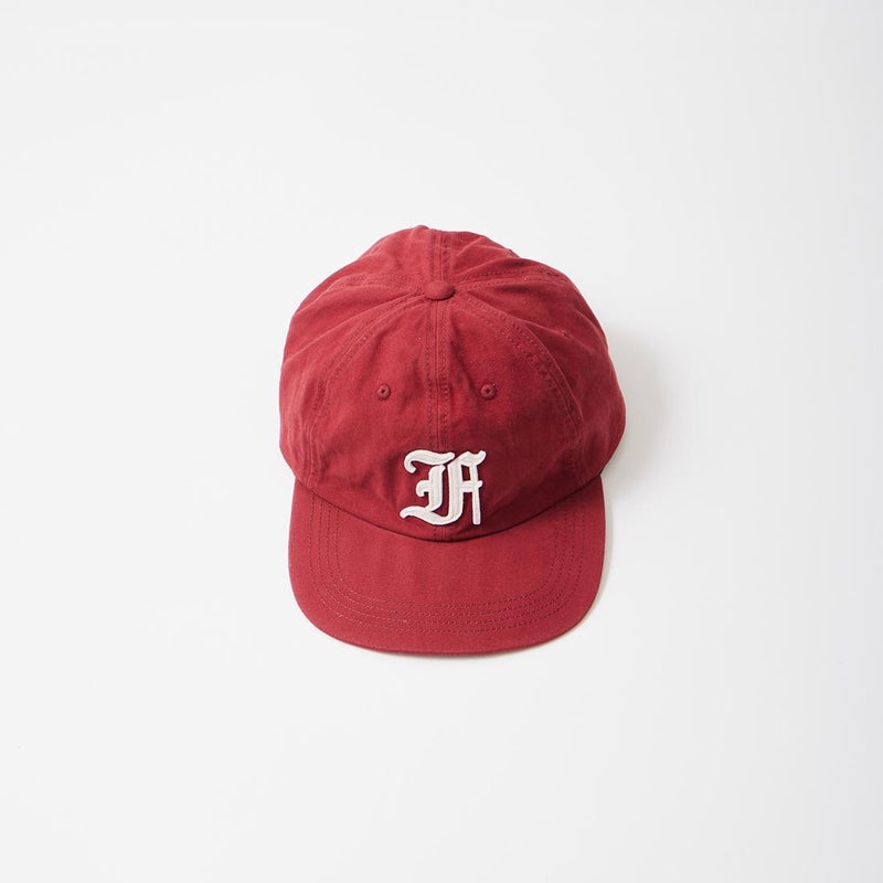 FELCO (フェルコ) NEW SHAPE TWILL STONE WASHED BB CAP W/OLD FONT "F" FELT - BURGUNDY_BURGUNDY STITCH_F NATURAL