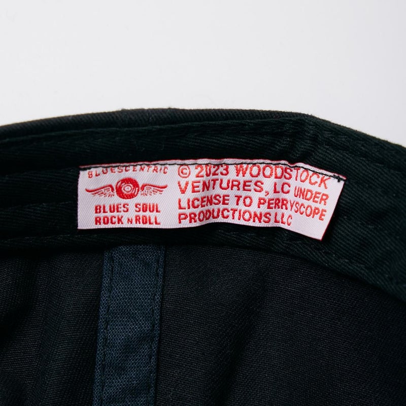 BLUESCENTRIC(ブルースセントリック)のWOODSTOCK HAT。ウッドストックフェスティバルのオフィシャルアイテム。ウッドストックフェスティバルは、音楽のみならず、1960年代のカウンター・カルチャーを集大成したヒッピー時代の頂点を示す象徴と捉えられています。深すぎないサイズ感で顔型を選ばないシルエット。後ろにバックルが装備されておりサイズ調整が可能。男女問わず使える汎用性の広さも魅力。調整したあまり生地は収納可能。バタバタと邪魔になる事もなくスッキリとしたバックスタイル。ウォッシュ加工によりヴィンテージ感ある雰囲気に。更なる経年変化も楽しんで頂ける永く愛用して頂けるキャップ。