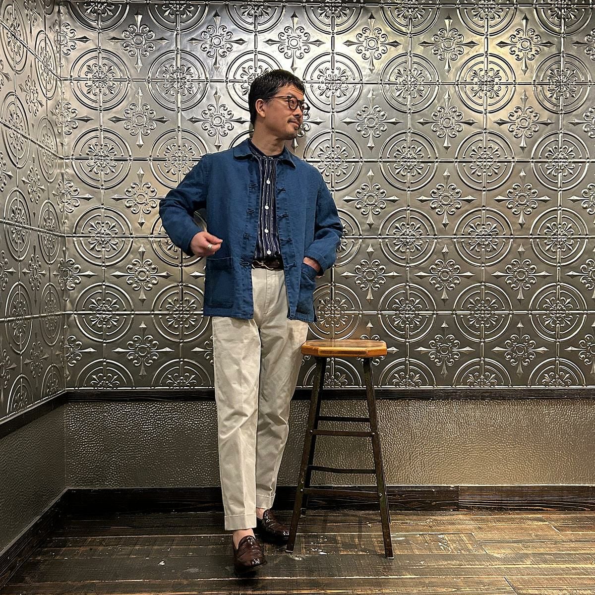 他の画像を見る ラウンジジャケット コットンヘリンボーン メンズ 日本製 WORKERS (ワーカーズ) LOUNGE JACKET COTTON HERRINGBONE - INDIGO 販売価格 ¥ 36,300 税込 お気に入りに登録する