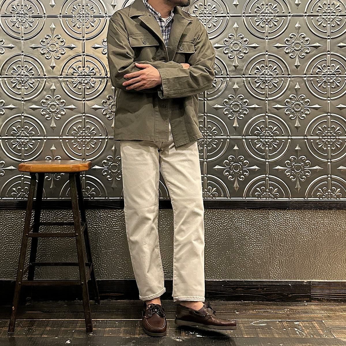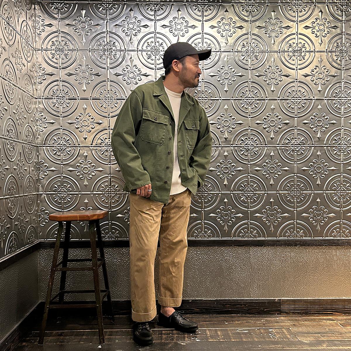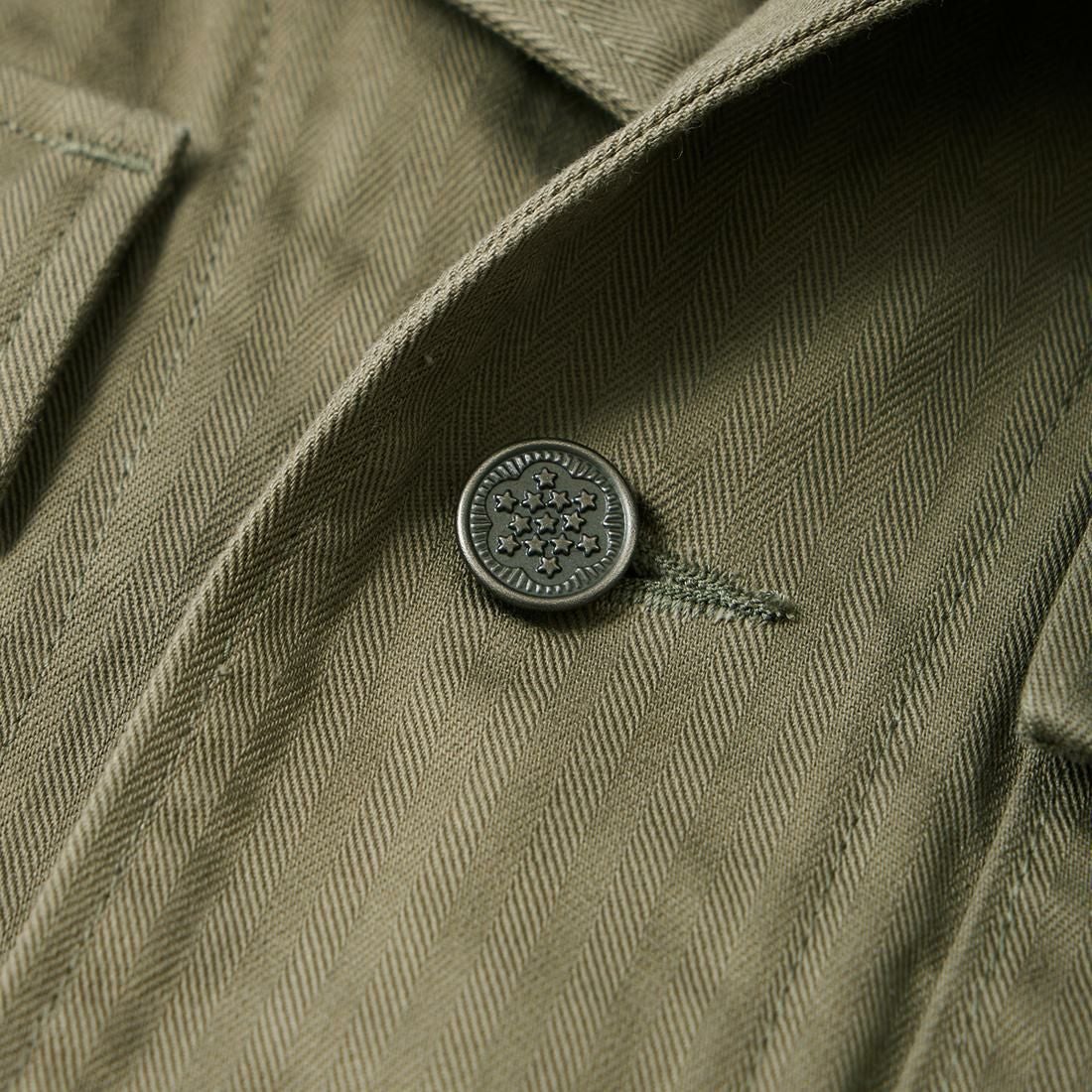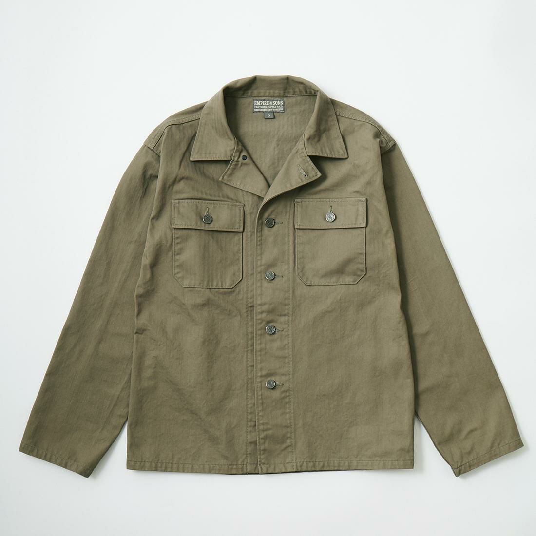 他の画像を見る Explorer別注 ミリタリーヘリンボーン シャツジャケット 1940年代 13スターメタルボタン EMPIRE & SONS (エンパイア アンド サンズ) HBT SHIRT JACKET 40's 13 STAR METAL BUTTON - OD ¥ 38,500 税込 お気に入りに登録する