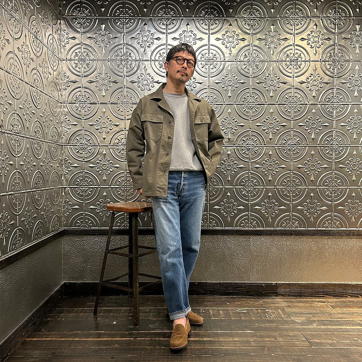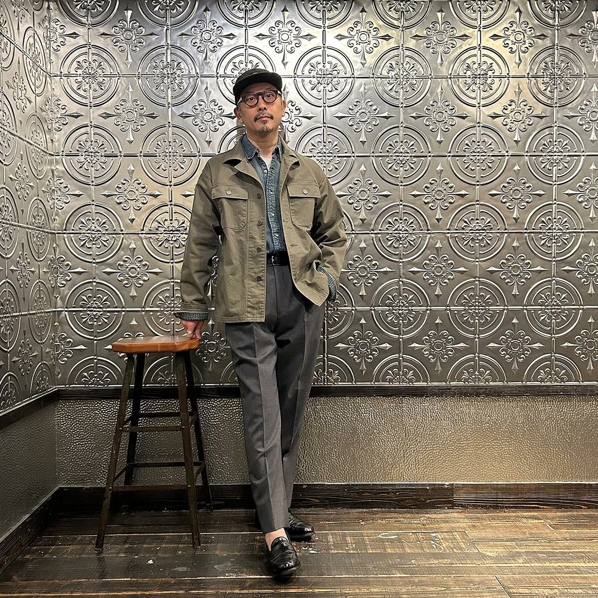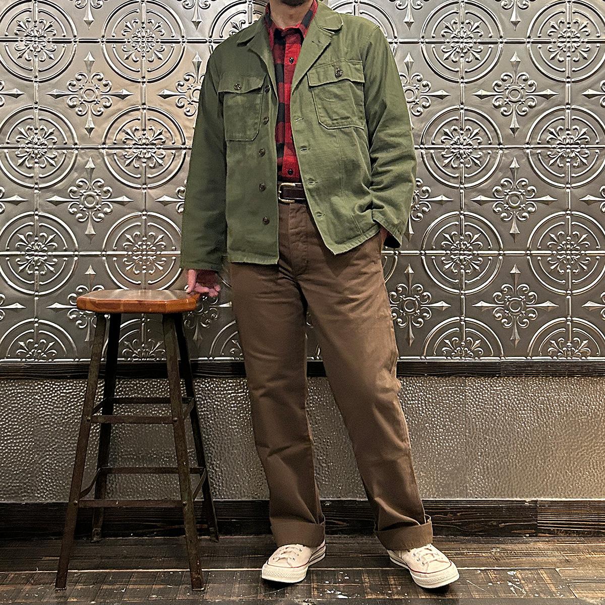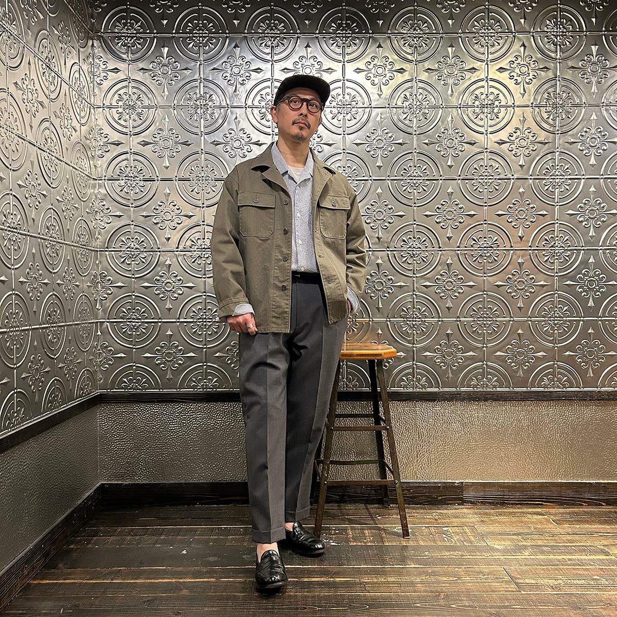 他の画像を見る Explorer別注 ミリタリーヘリンボーン シャツジャケット 1940年代 13スターメタルボタン EMPIRE & SONS (エンパイア アンド サンズ) HBT SHIRT JACKET 40's 13 STAR METAL BUTTON - OD ¥ 38,500 税込 お気に入りに登録する