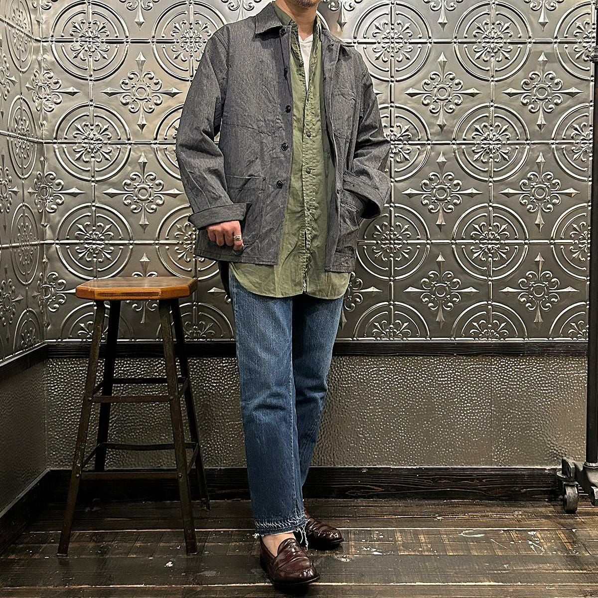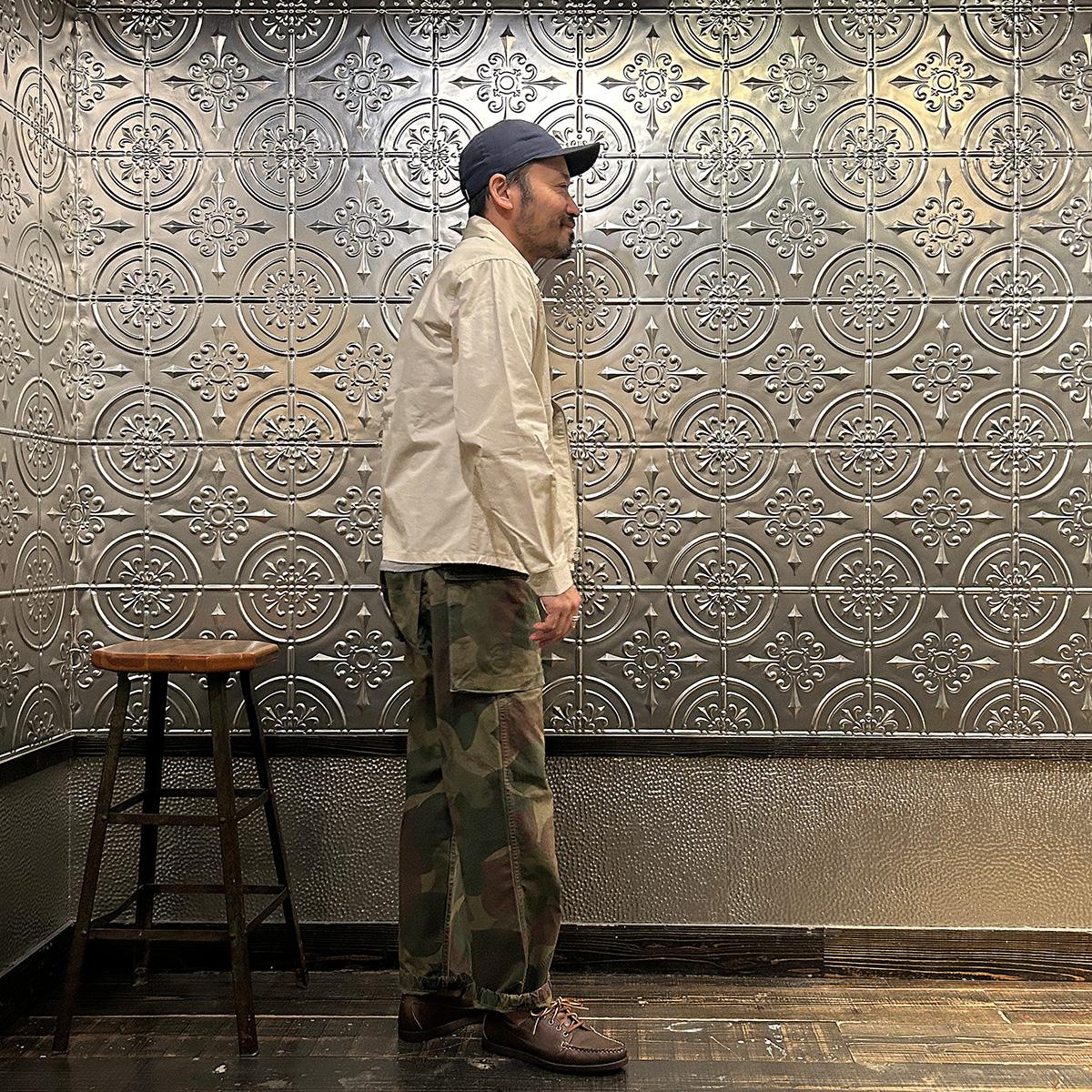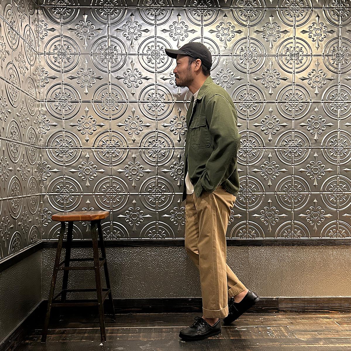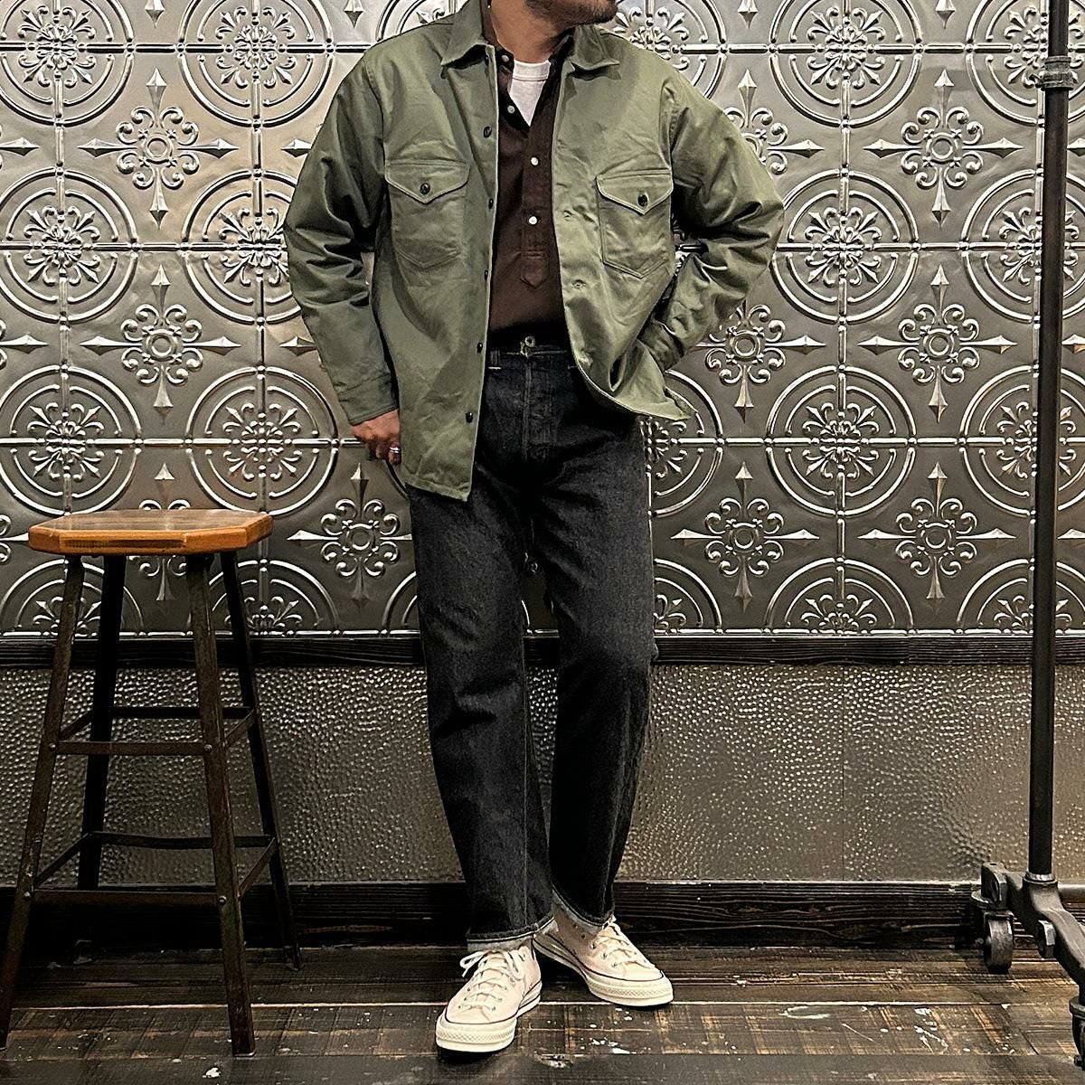 他の画像を見る Explorer別注 ミリタリーヘリンボーン シャツジャケット 1940年代 13スターメタルボタン EMPIRE & SONS (エンパイア アンド サンズ) HBT SHIRT JACKET 40's 13 STAR METAL BUTTON - OD ¥ 38,500 税込 お気に入りに登録する