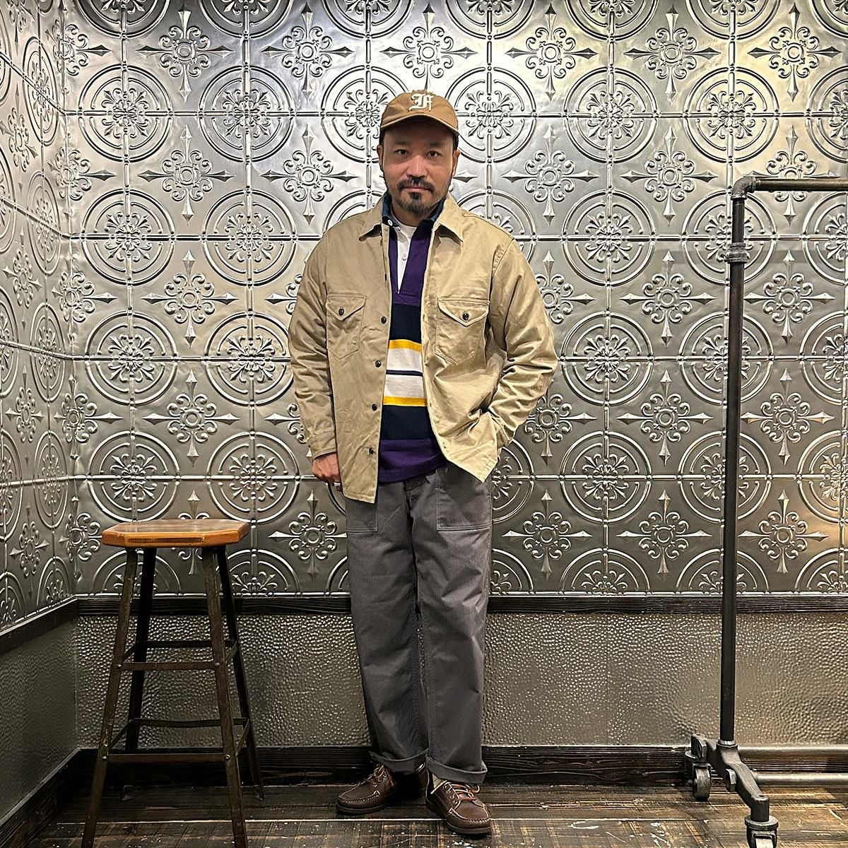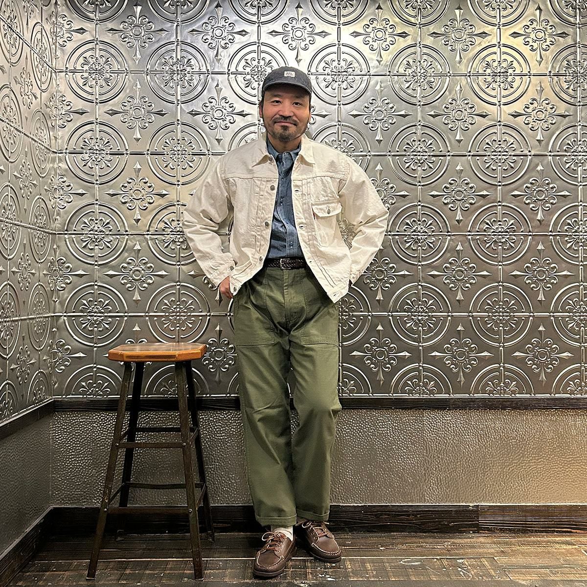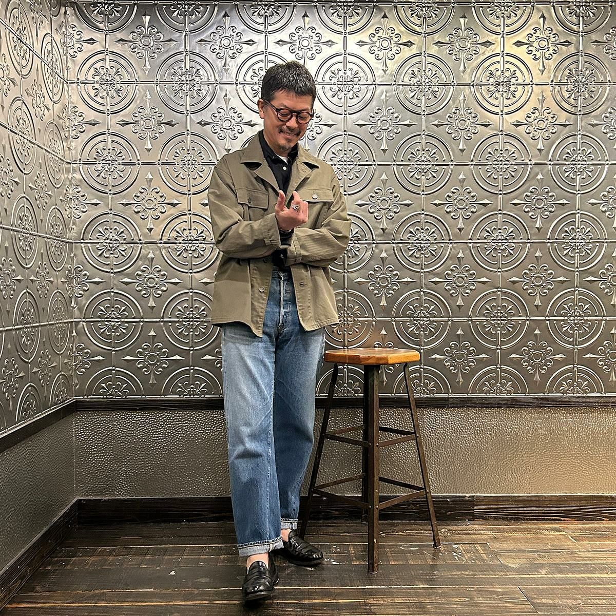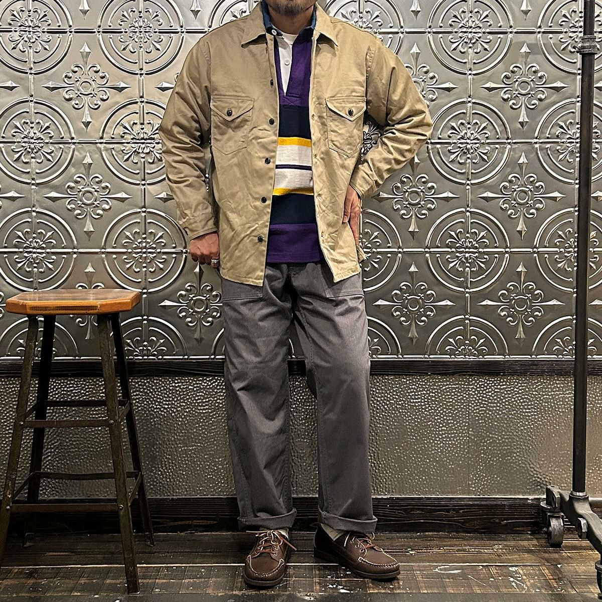 他の画像を見る Explorer別注 ミリタリーヘリンボーン シャツジャケット 1940年代 13スターメタルボタン EMPIRE & SONS (エンパイア アンド サンズ) HBT SHIRT JACKET 40's 13 STAR METAL BUTTON - OD ¥ 38,500 税込 お気に入りに登録する