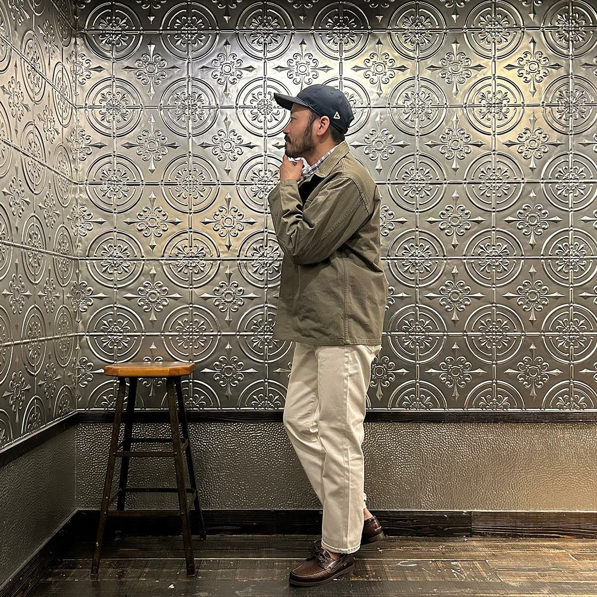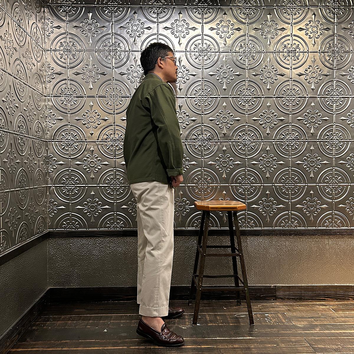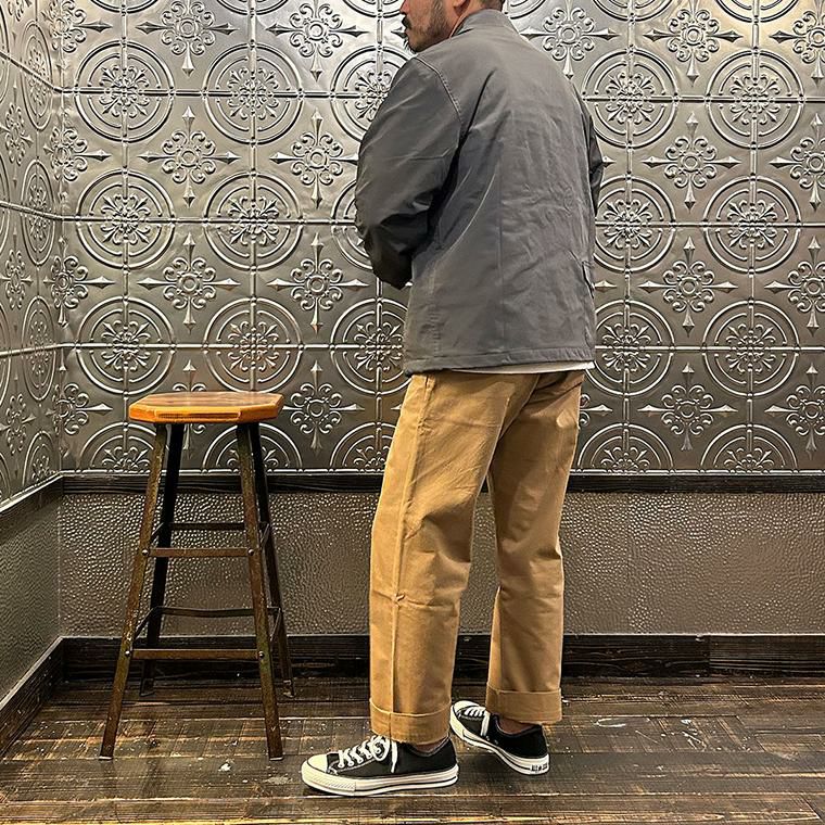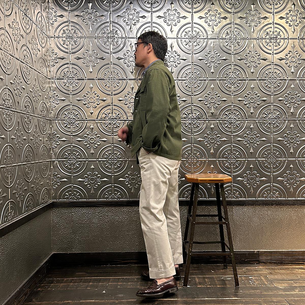他の画像を見る カバーオール ワークジャケット ヴィンテージ スラブチノクロス 日本製 EMPIRE & SONS (エンパイア アンド サンズ) COVERALL WORK JACKET VINTAGE SLUB CHINO CLOTH - OLIVE DRAB 販売価格 ¥ 27,500 税込 お気に入りに登録する