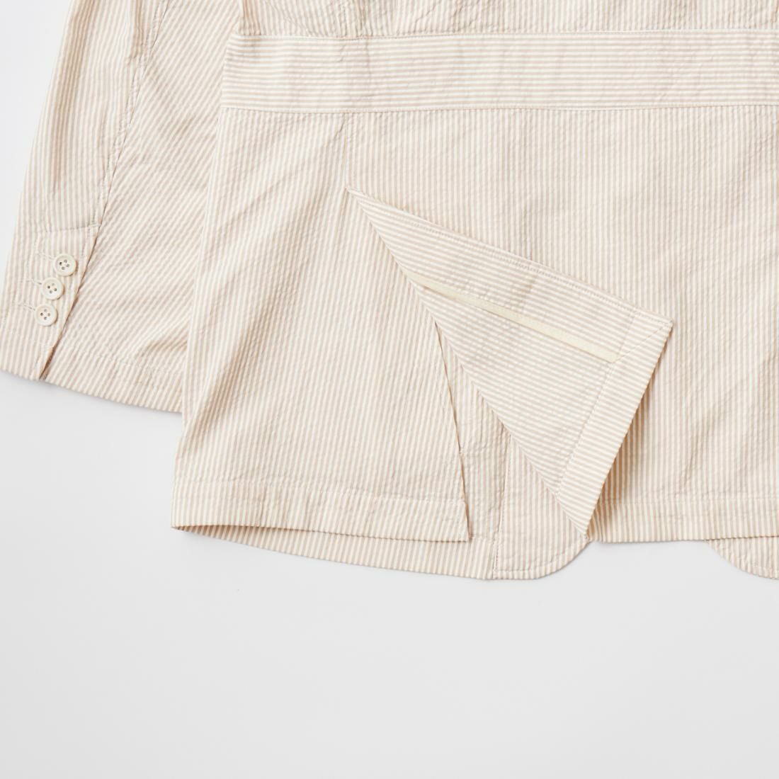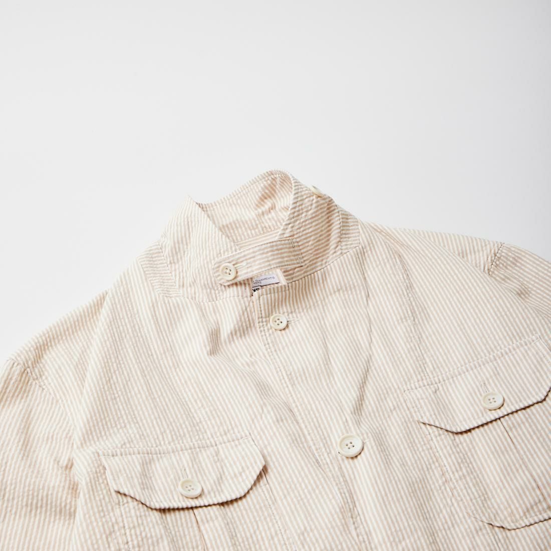 他の画像を見る 2025春夏新作 QT130 フォークジャケット コットン シアサッカーストライプ ENGINEERED GARMENTS (エンジニアドガーメンツ) FOLK JACKET COTTON SEERSUCKER STRIPE - BEIGE 販売価格 ¥ 83,600 税込 お気に入りに登録する
