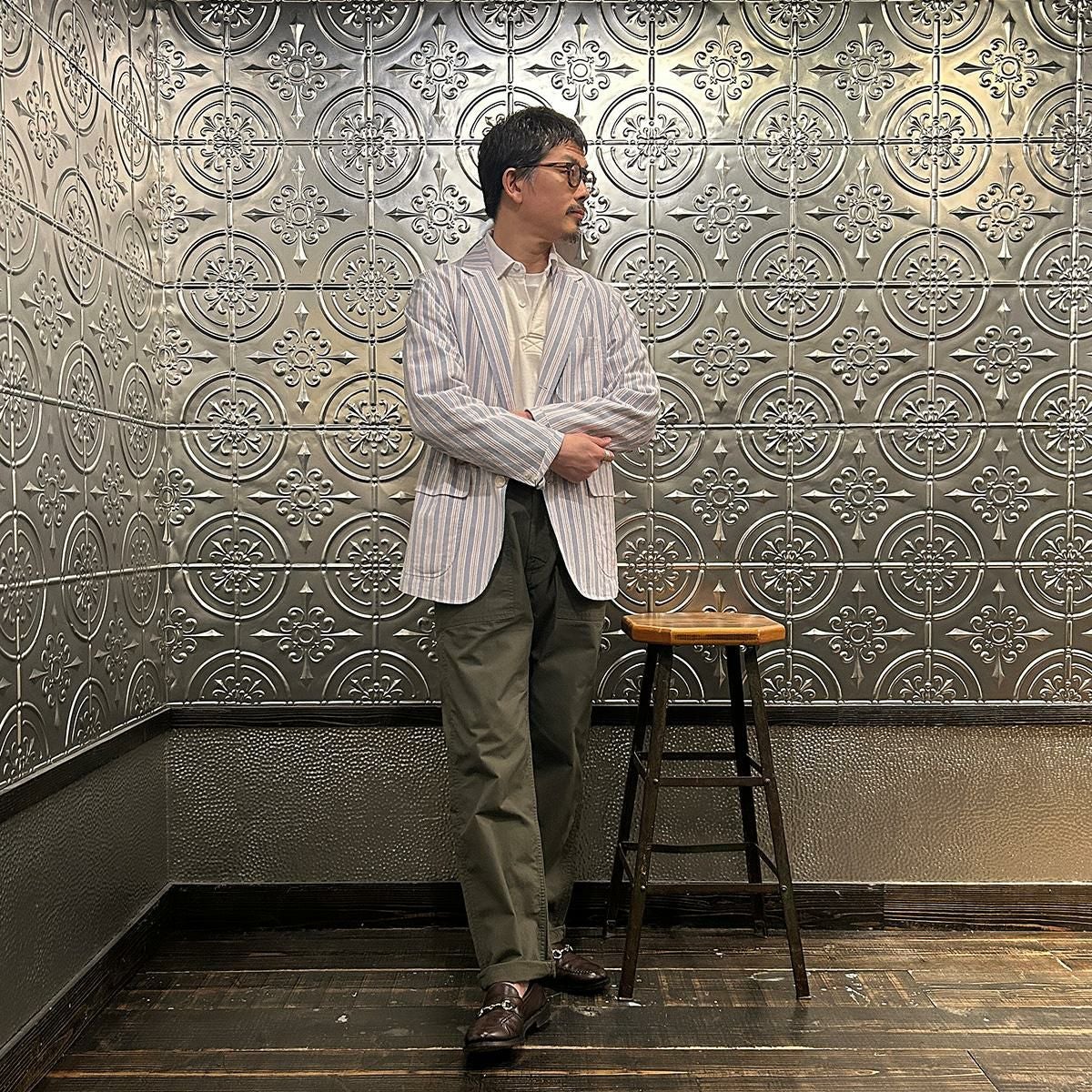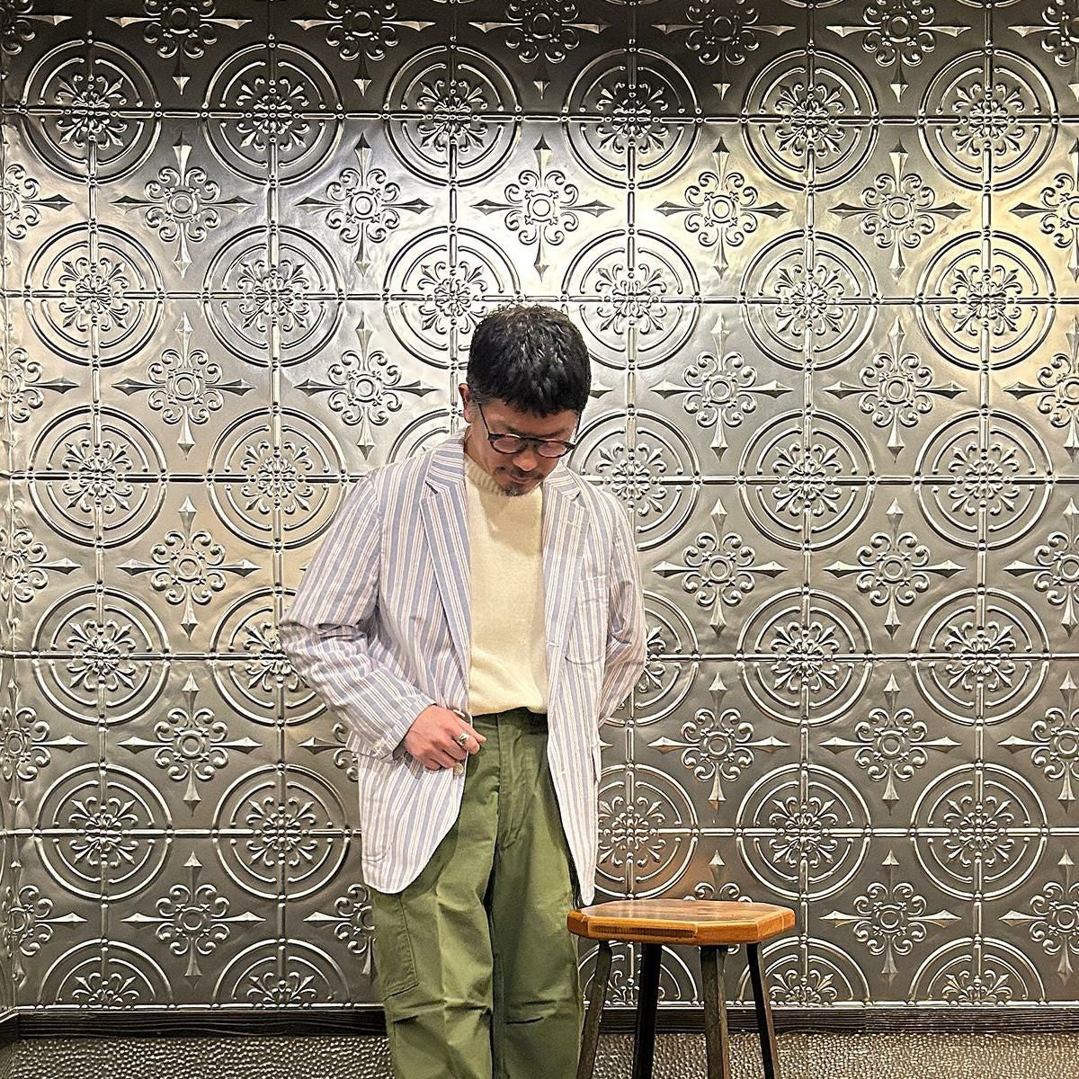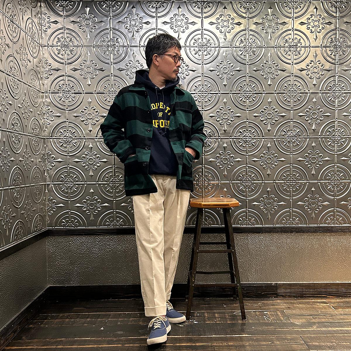 他の画像を見る ポプリン アワードジャケット メンズ FELCO (フェルコ) POPLIN AWARD JACKET - NATURAL_GREEN&NATURAL STRIPE ¥ 24,200 税込 お気に入りに登録する