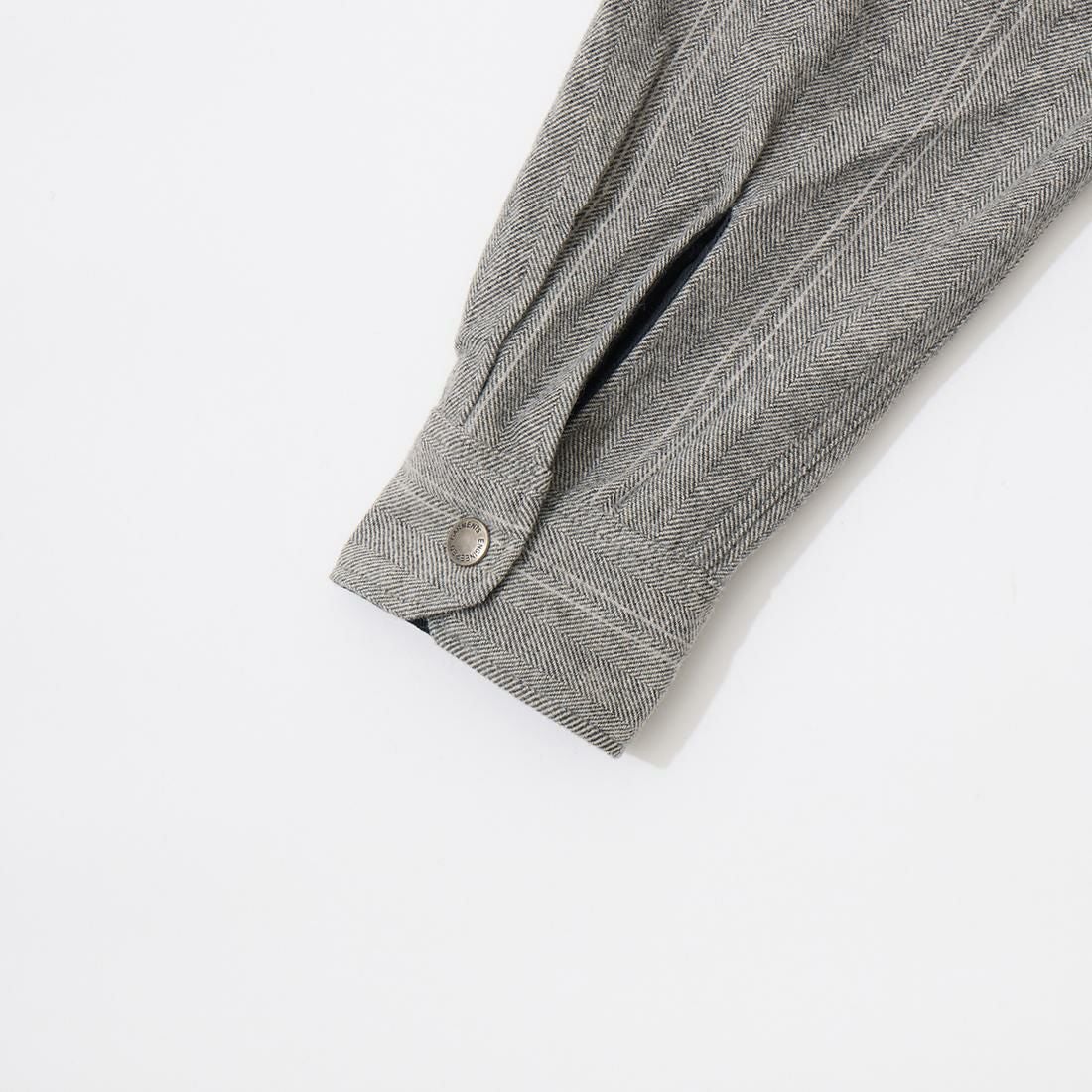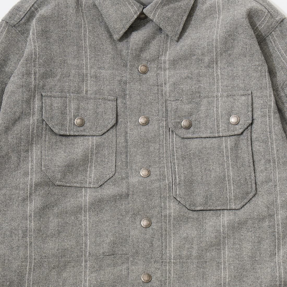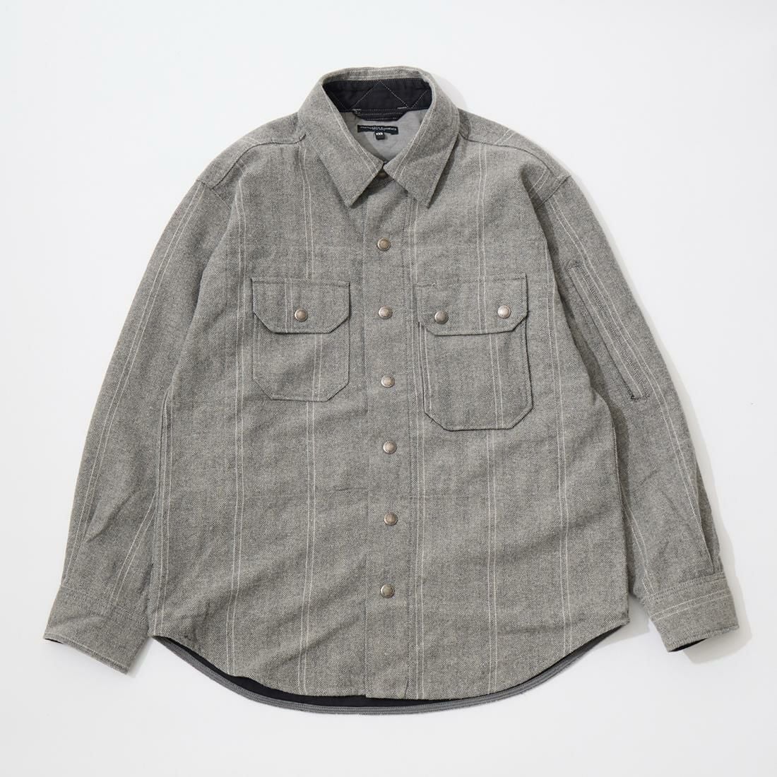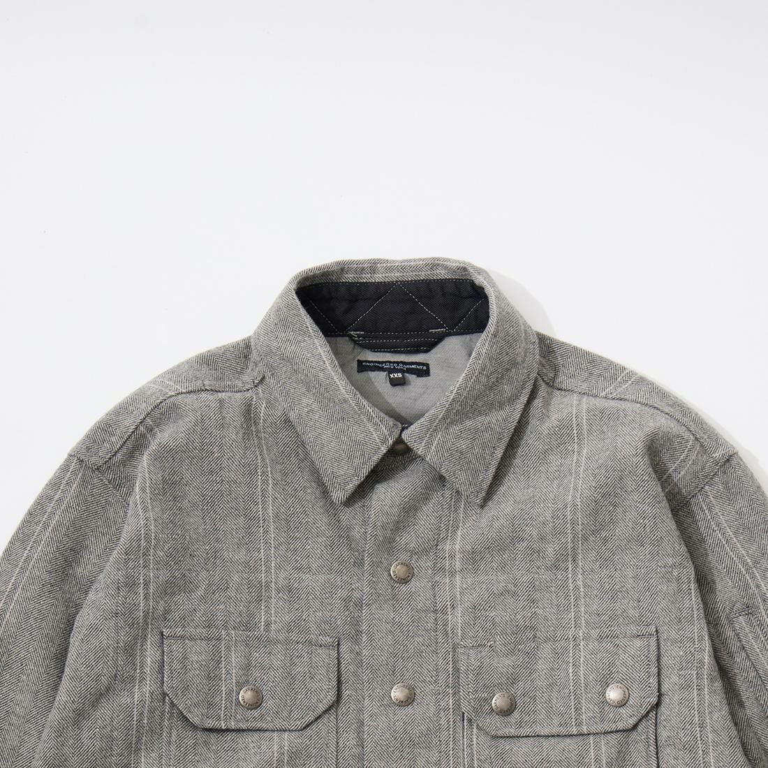 他の画像を見る 2025秋冬新作 RV190 シーピーオーシャツジャケット ウールストライプ ヘリンボーン ENGINEERED GARMENTS (エンジニアドガーメンツ) CPO SHIRT JACKET WOOL STRIPED HB - LT GREY 販売価格 ¥ 61,600 税込 お気に入りに登録する